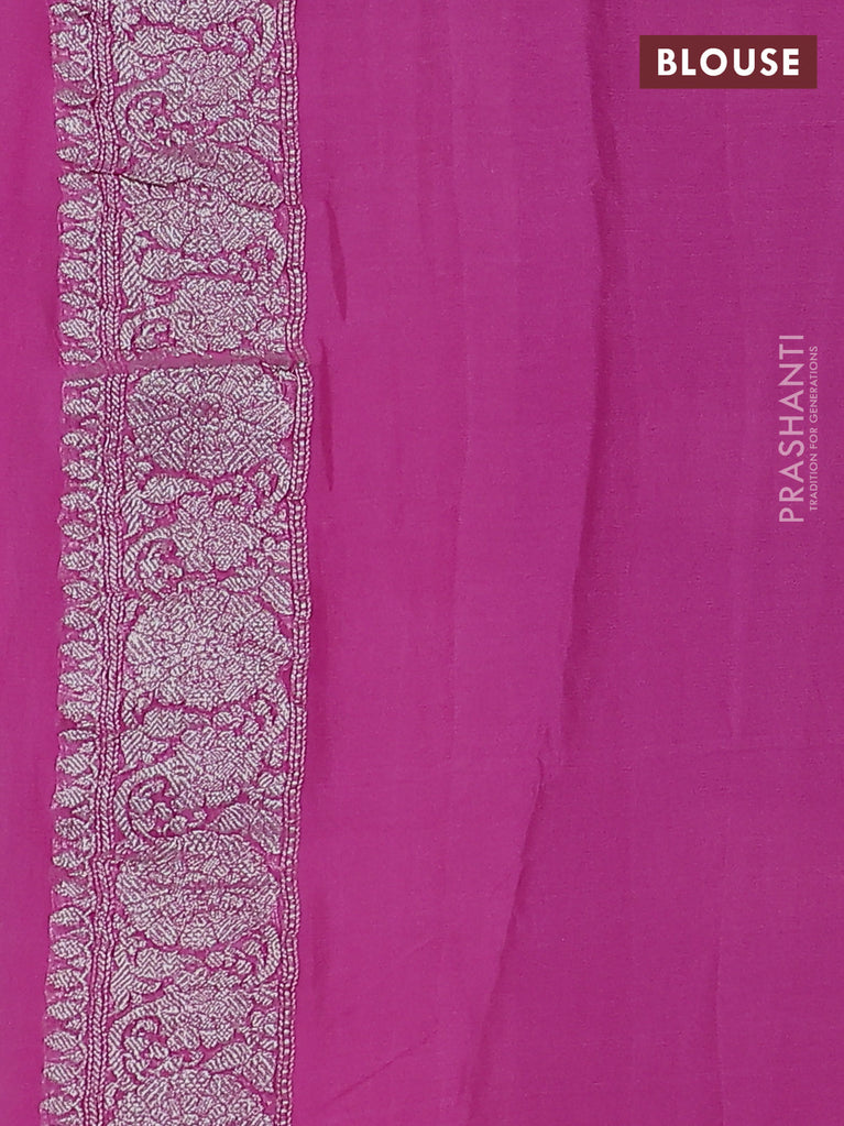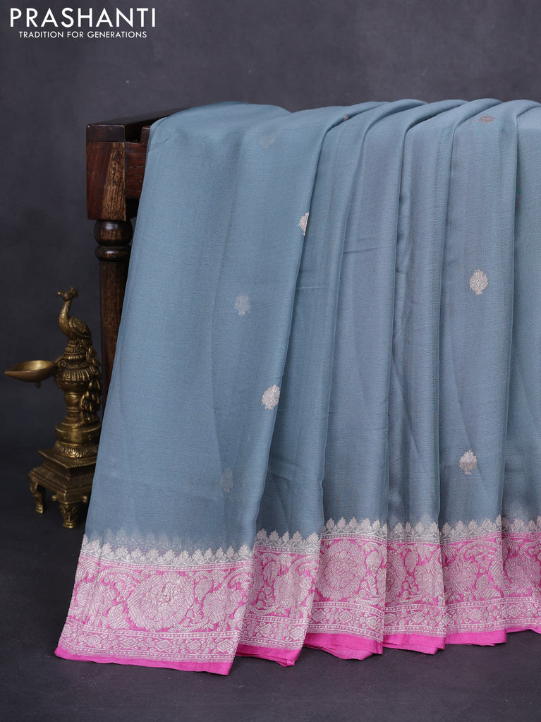 Banarasi chiffon silk saree magenta pink with silver zari woven buttas and silver zari woven border