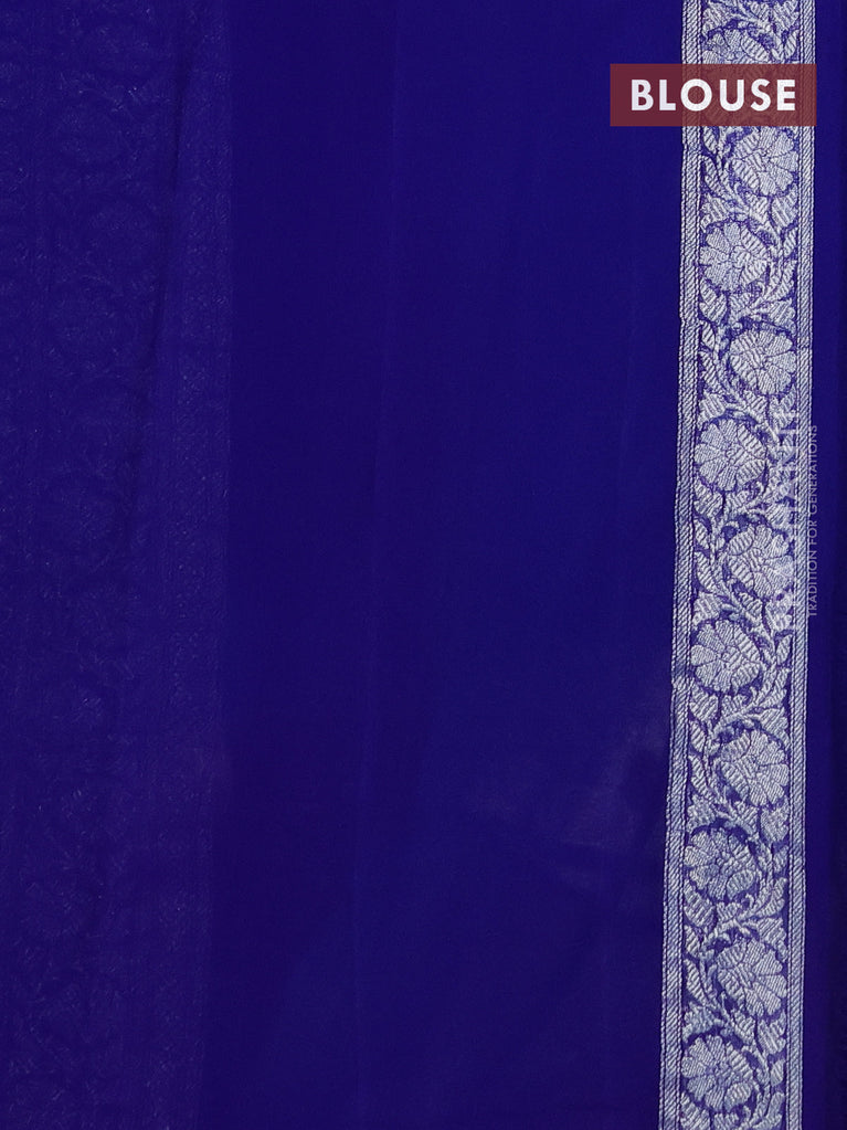 Banarasi chiffon silk saree cs blue and blue with silver zari woven buttas and silver zari woven border