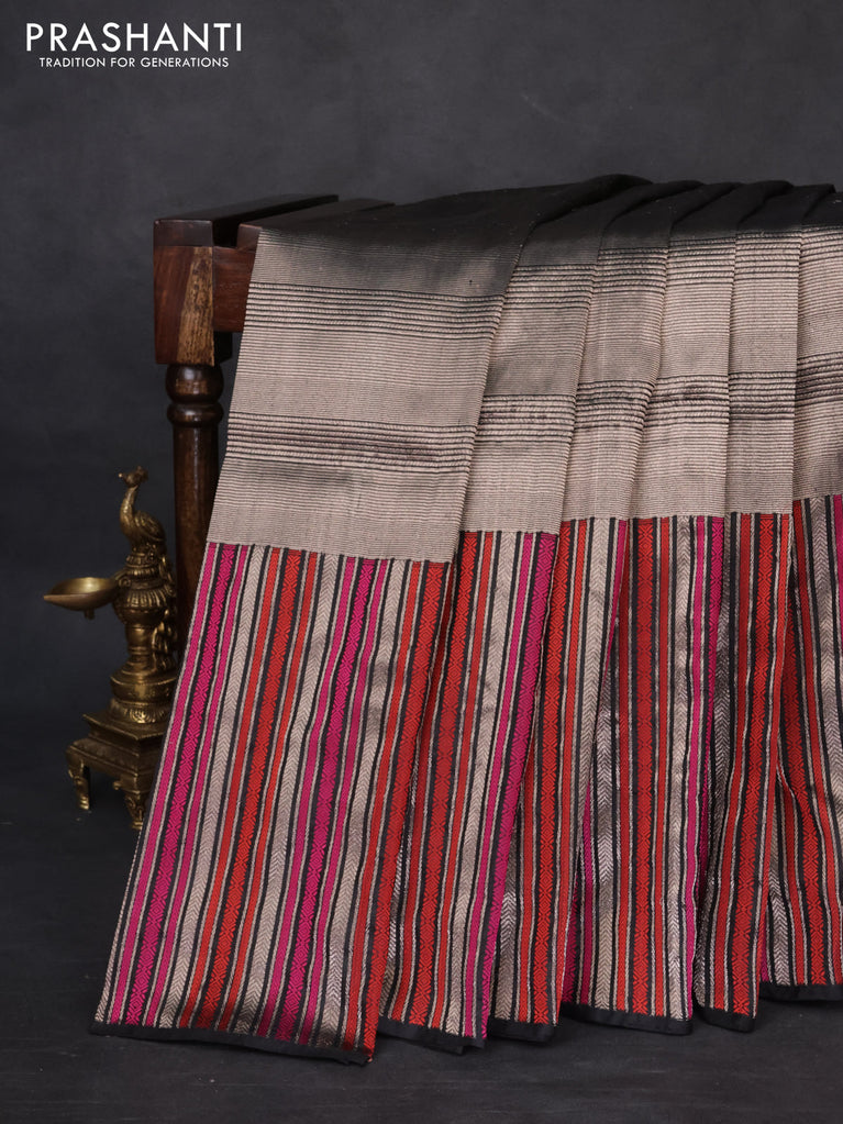 Banarasi katan tissue silk saree black with allover zari weaves and long thread & zari woven border