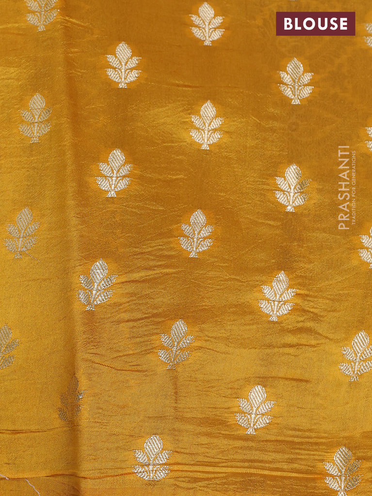 Banarasi poona silk saree blue and mango yellow with allover zari weaves in borderless style