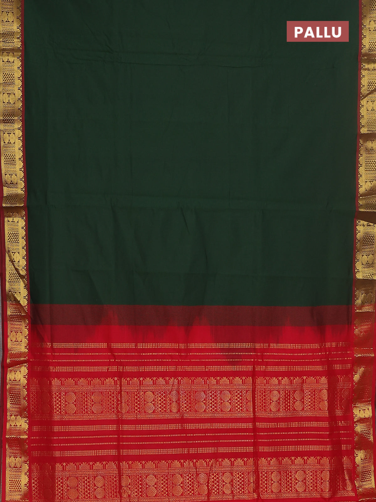 10 yards Poly cotton saree sap green and red with plain body and zari woven border