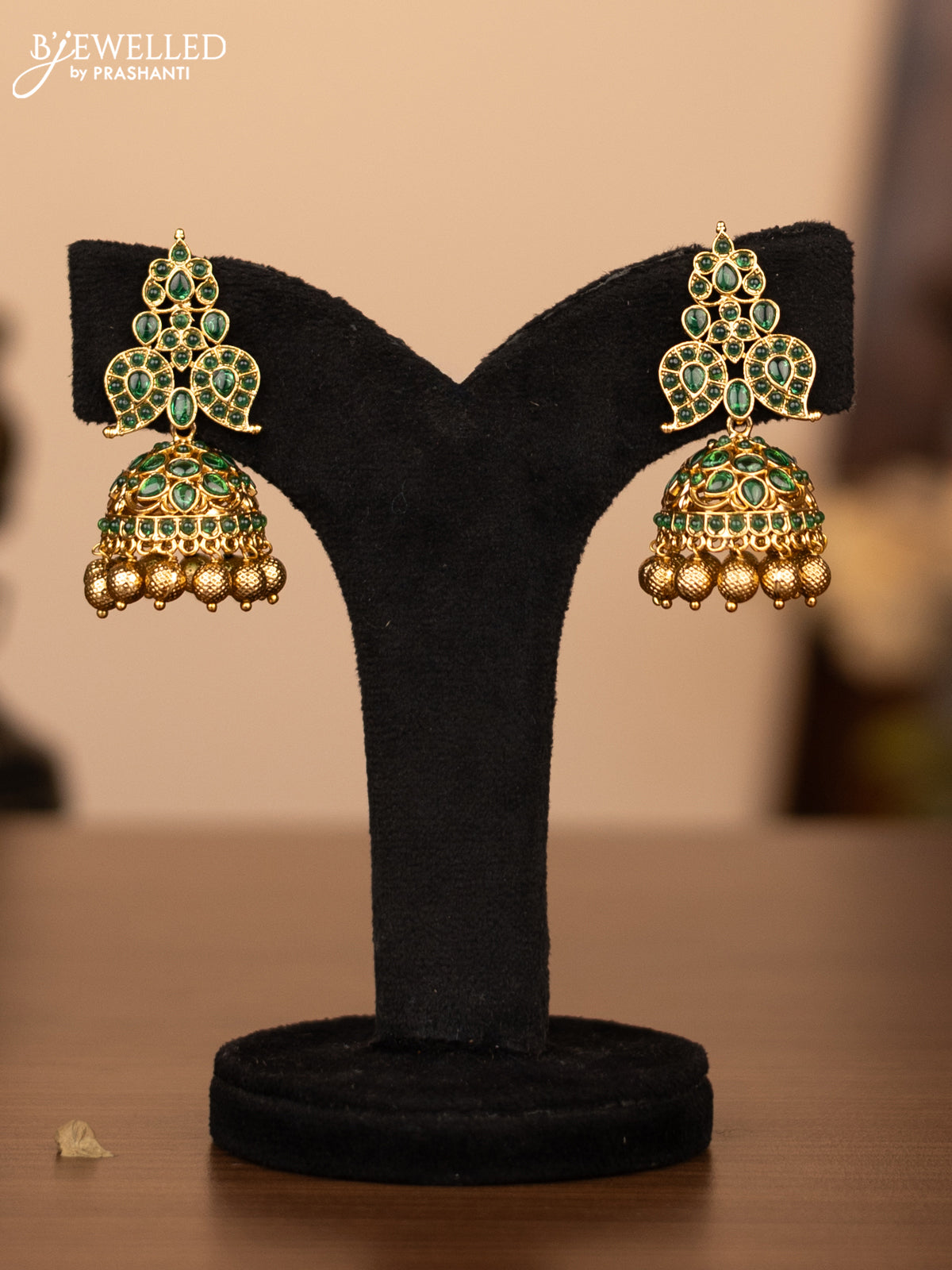 Antique necklace manga pattern with green kemp stones and golden beads hanging