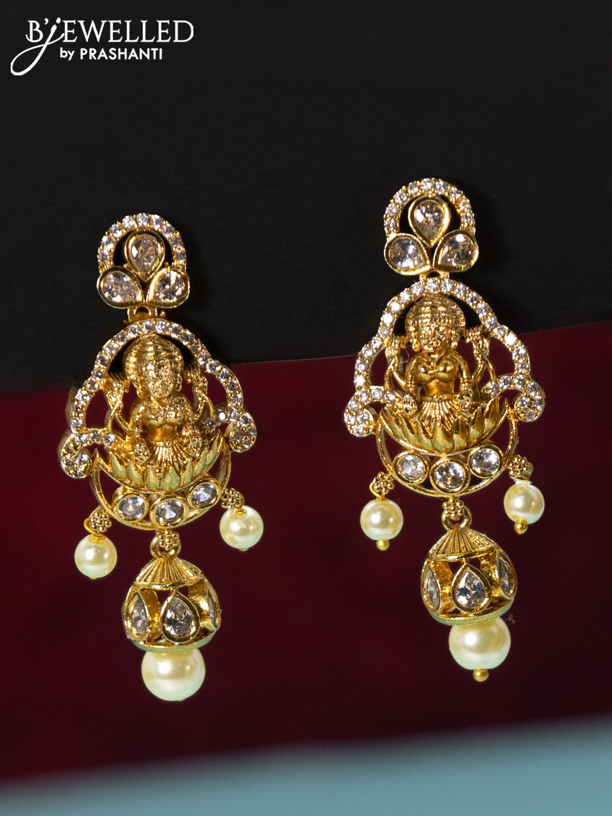 Antique ring type choker cz stones with lakshmi pendant and pearl hangings