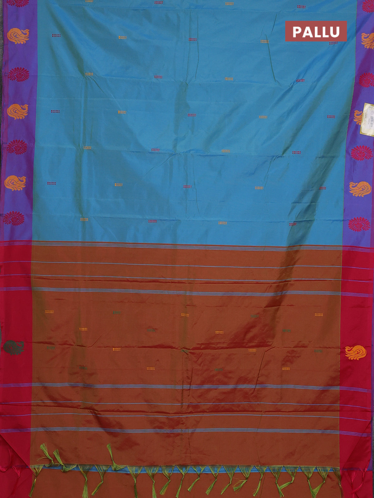 Arani semi silk saree dual shade of teal blue and pink with thread woven buttas and thread woven butta border