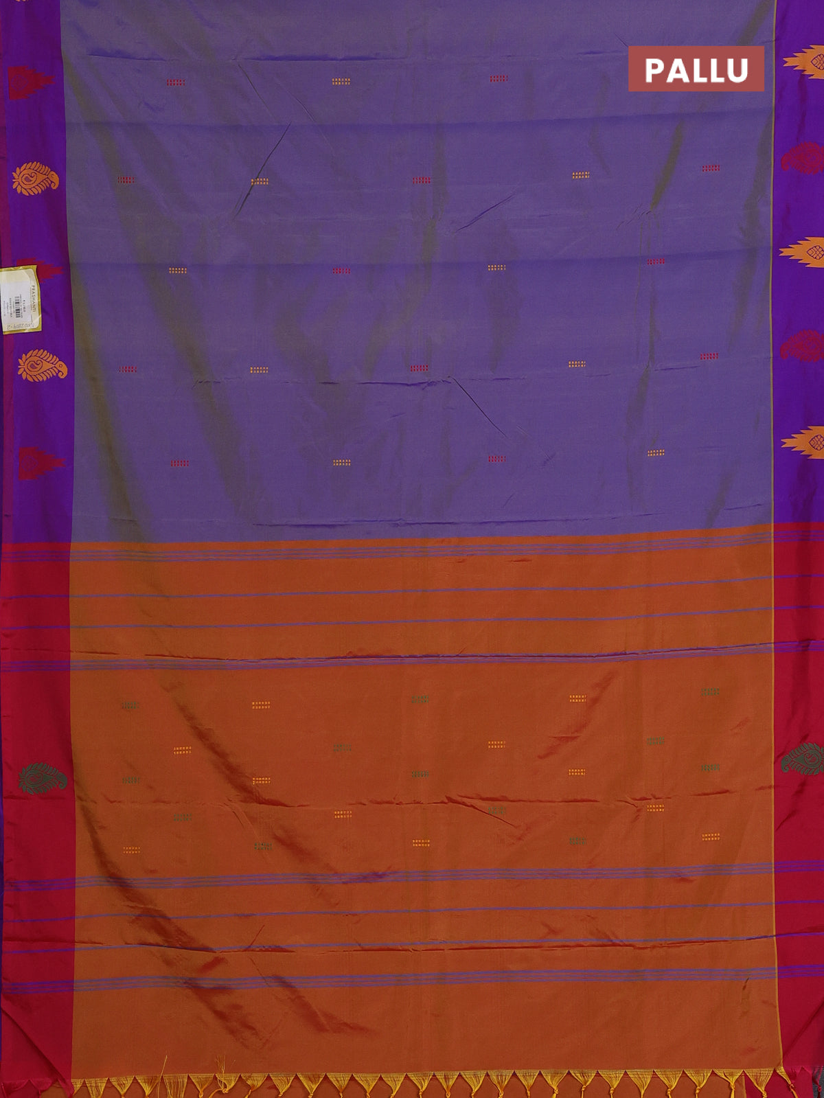 Arani semi silk saree dual shade of violet and dual shade of orange with thread woven buttas and thread woven butta border
