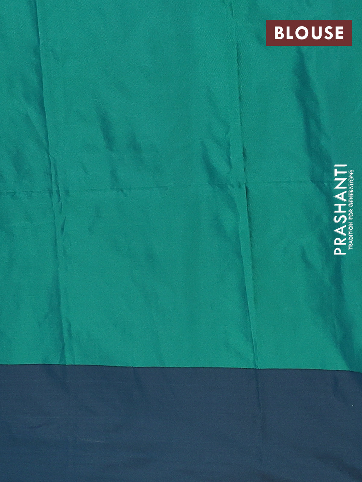 Arani semi silk saree green and peacock blue with allover silver & copper zari weaves and zari woven border
