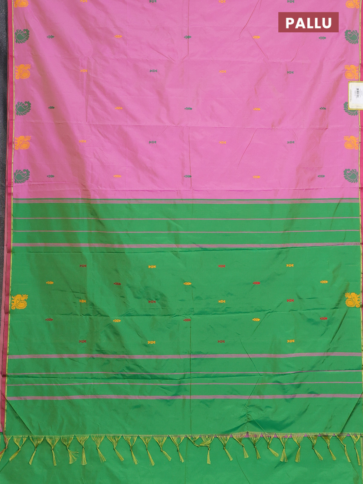 Arani semi silk saree light pink and green with thread woven buttas and thread woven butta border