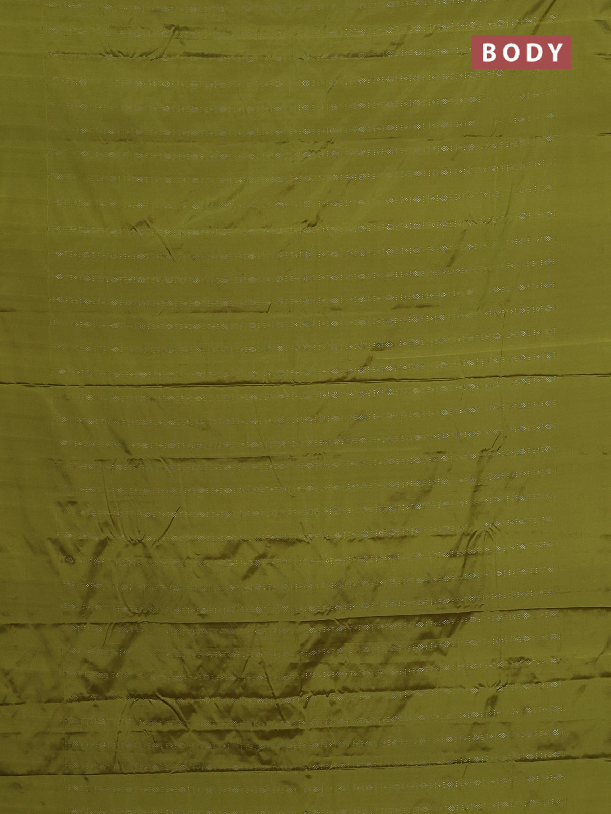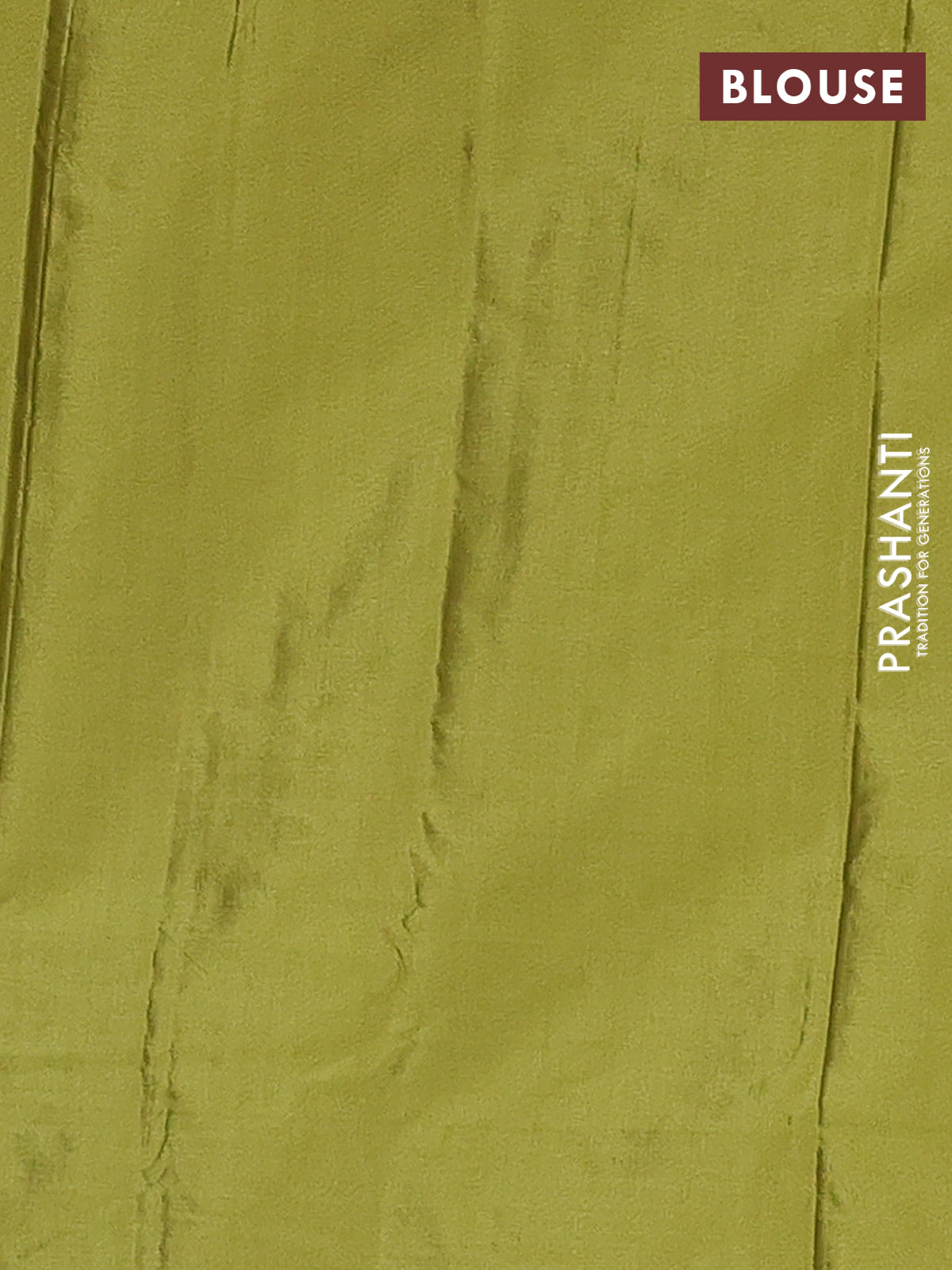 Arani semi silk saree lime green with allover silver zari weaves in borderless style