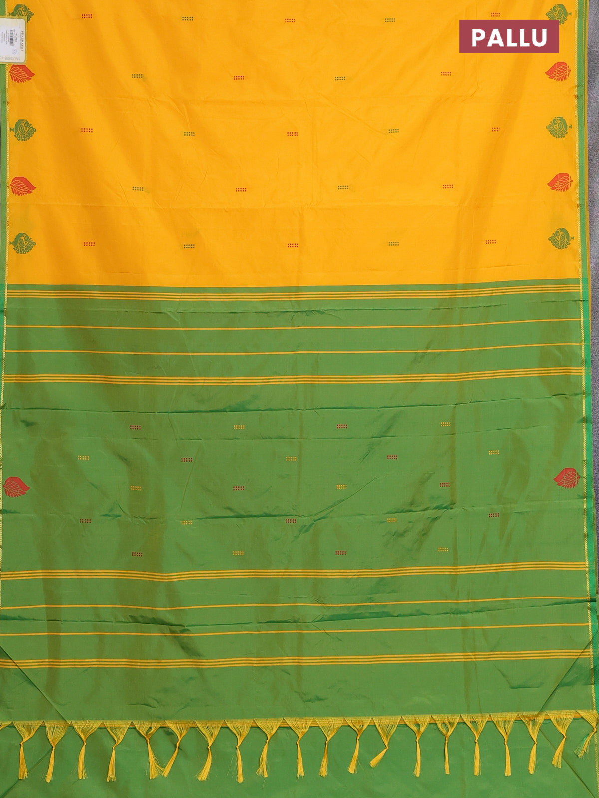 Arani semi silk saree mango yellow and green with thread woven buttas and thread woven butta border