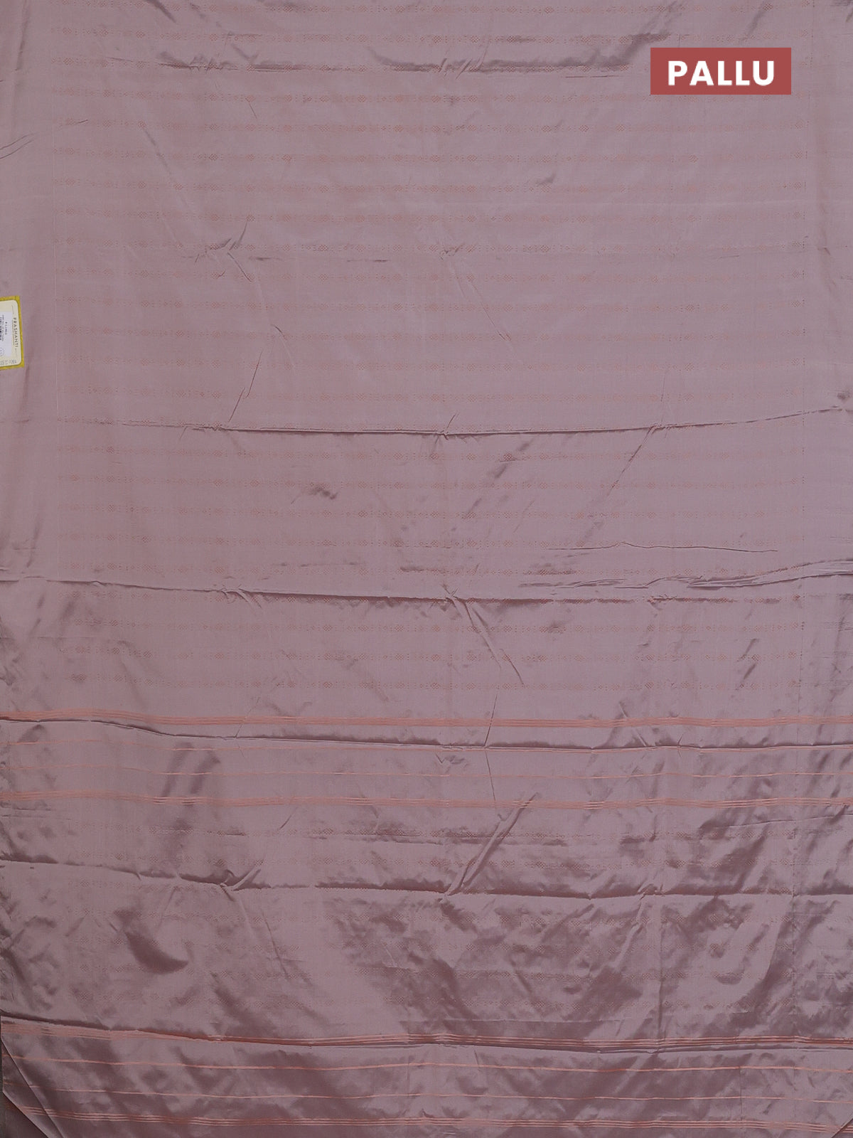 Arani semi silk saree pastel pink with allover copper zari weaves in borderless style
