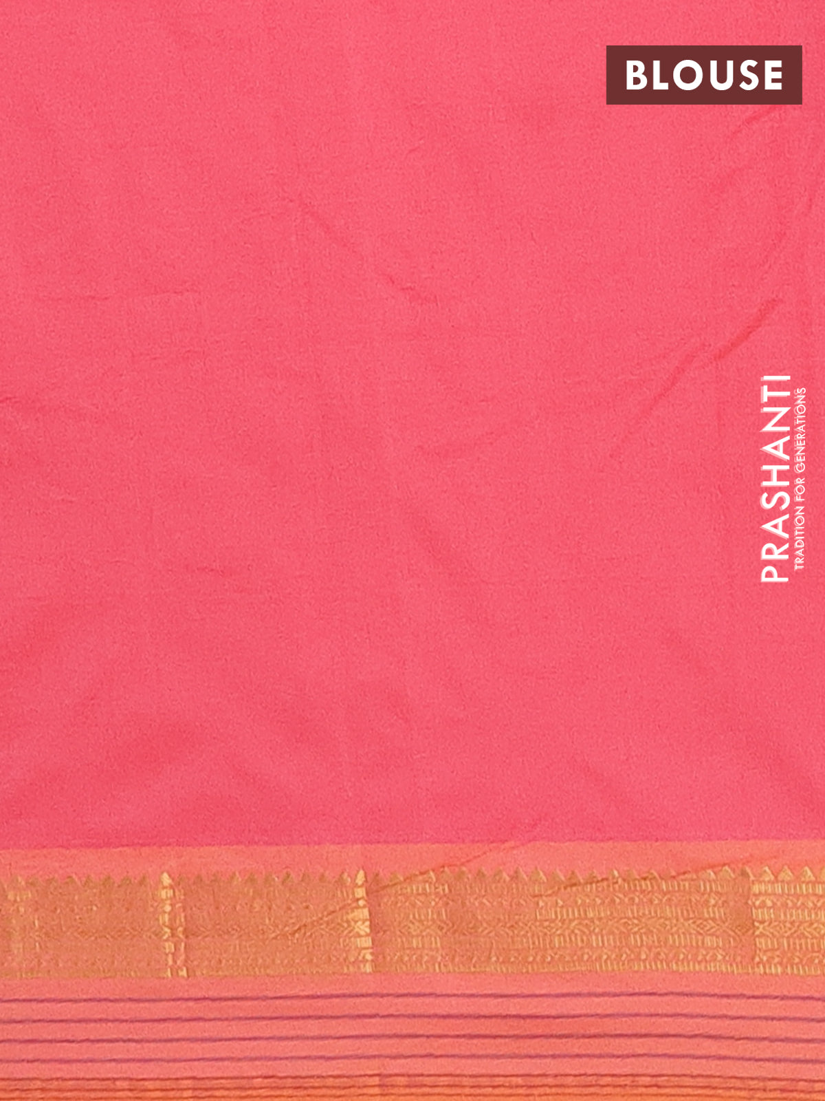 Arani semi silk saree peach pink and dual shade of yellow with plain body and zari woven simple border