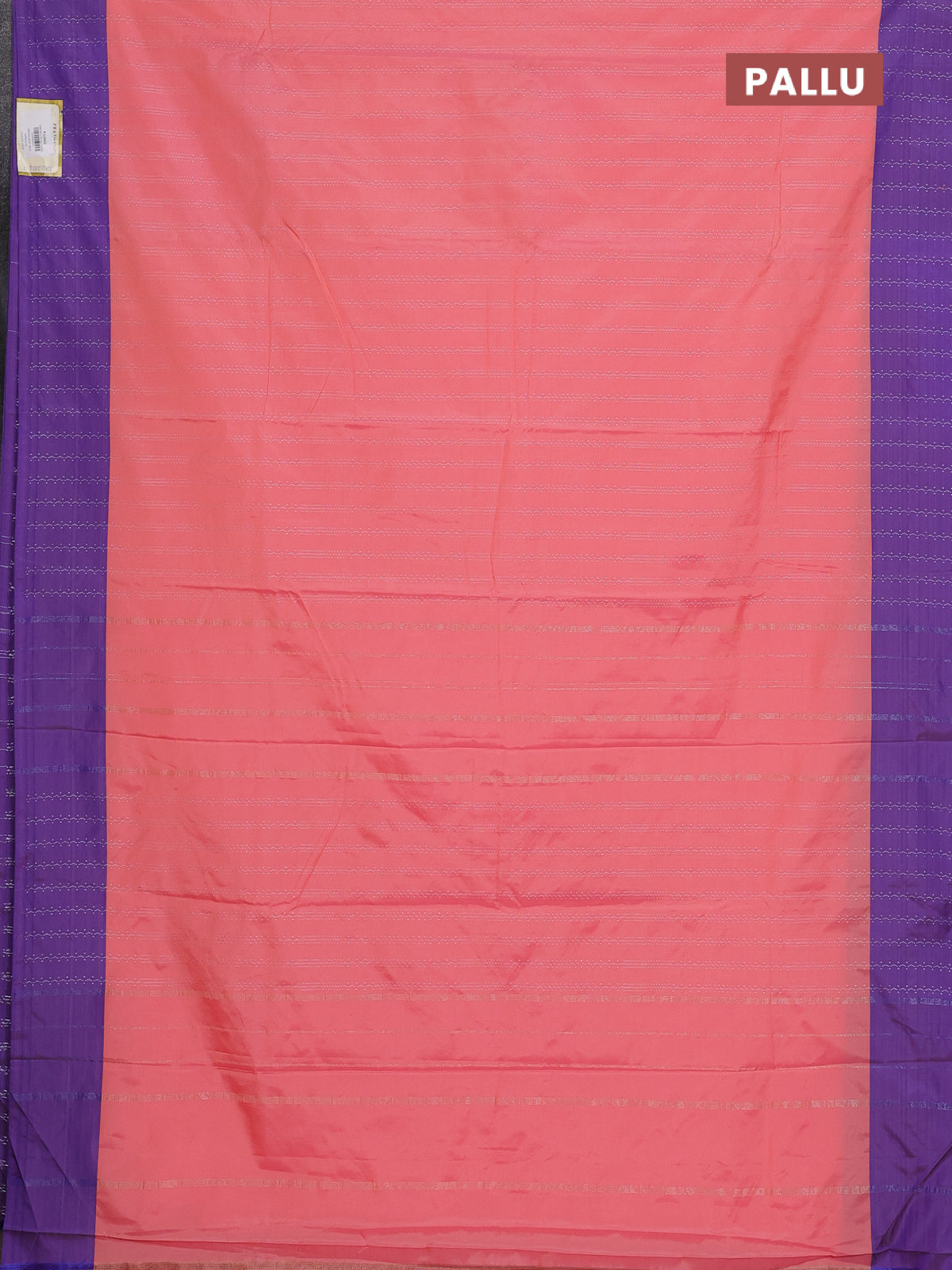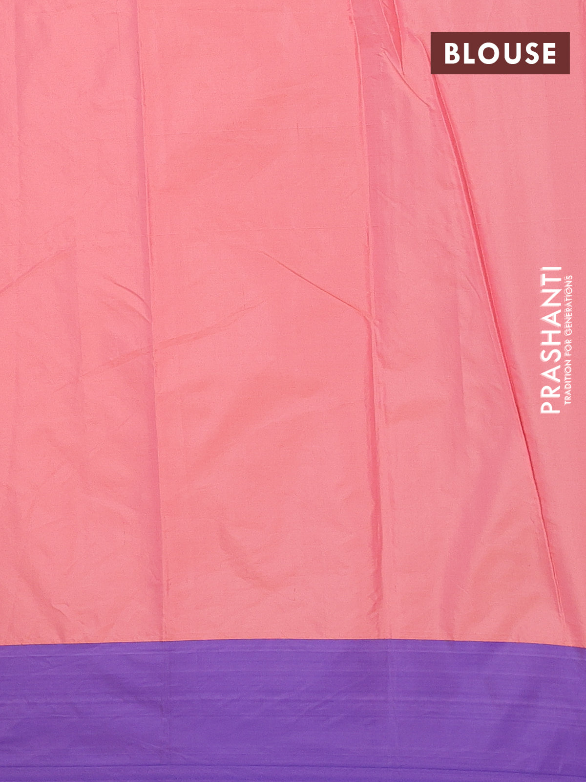Arani semi silk saree peach pink and violet with allover copper zari weaves and zari woven border