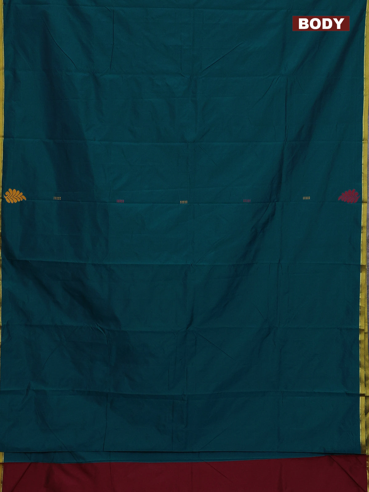 Arani semi silk saree peacock green and maroon with thread woven buttas and piping border