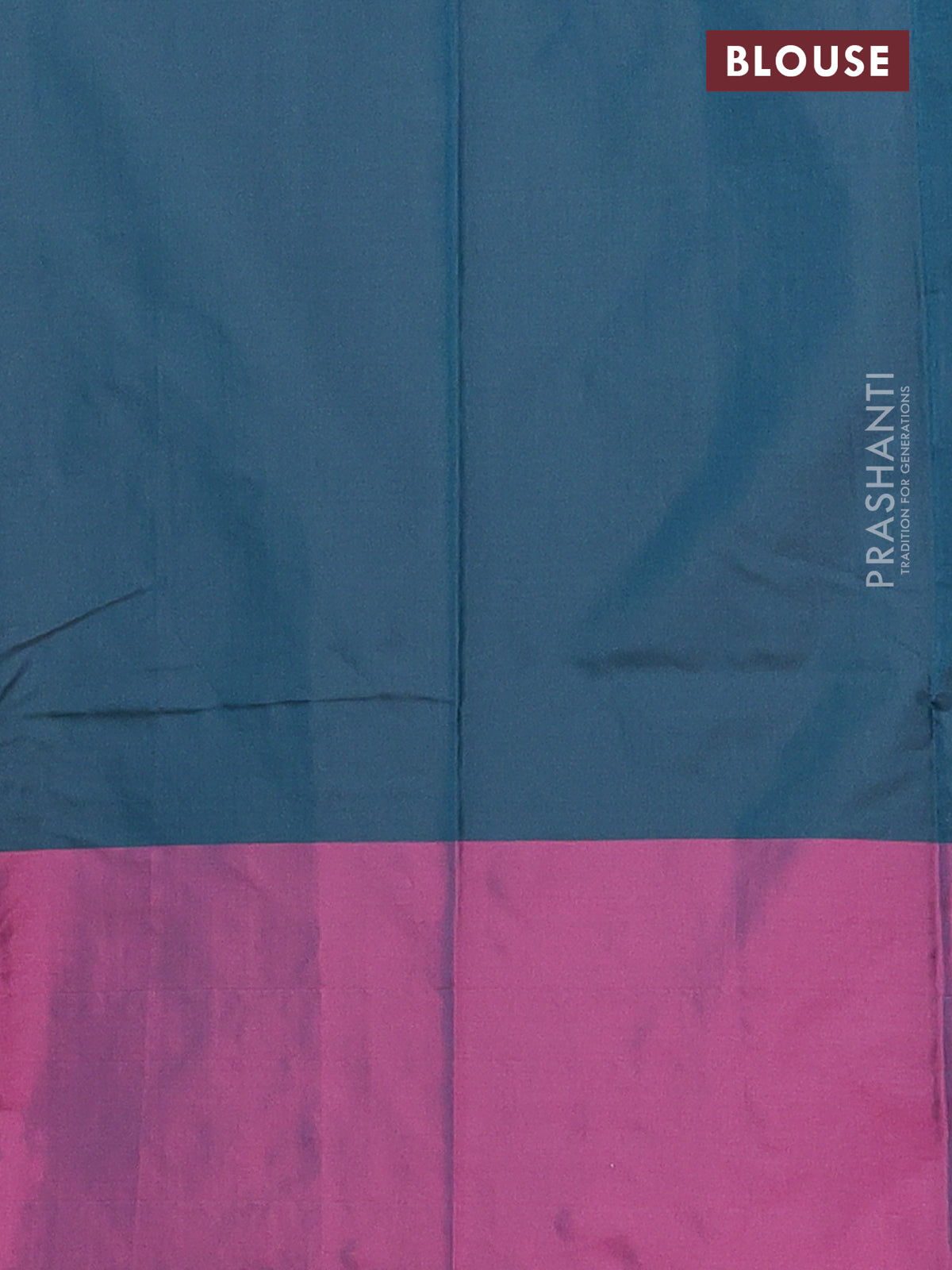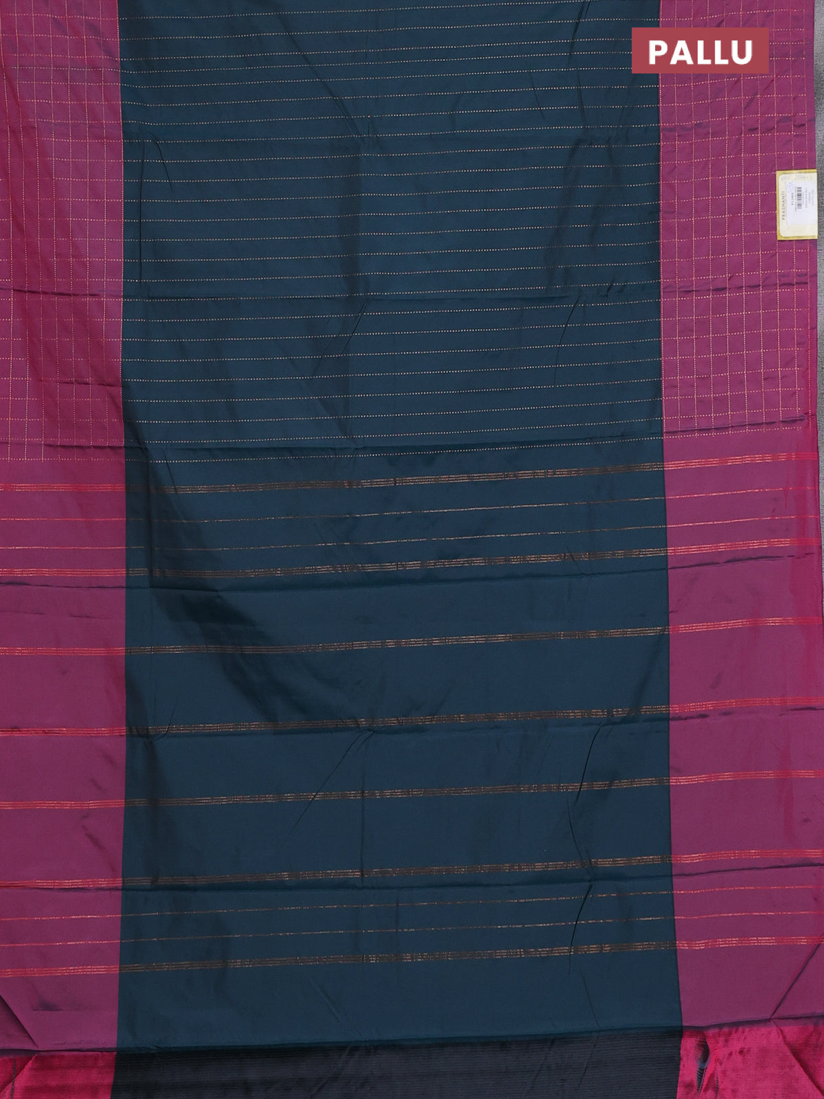 Arani semi silk saree peacock green and mauve pink with allover copper zari weaves and zari checked border