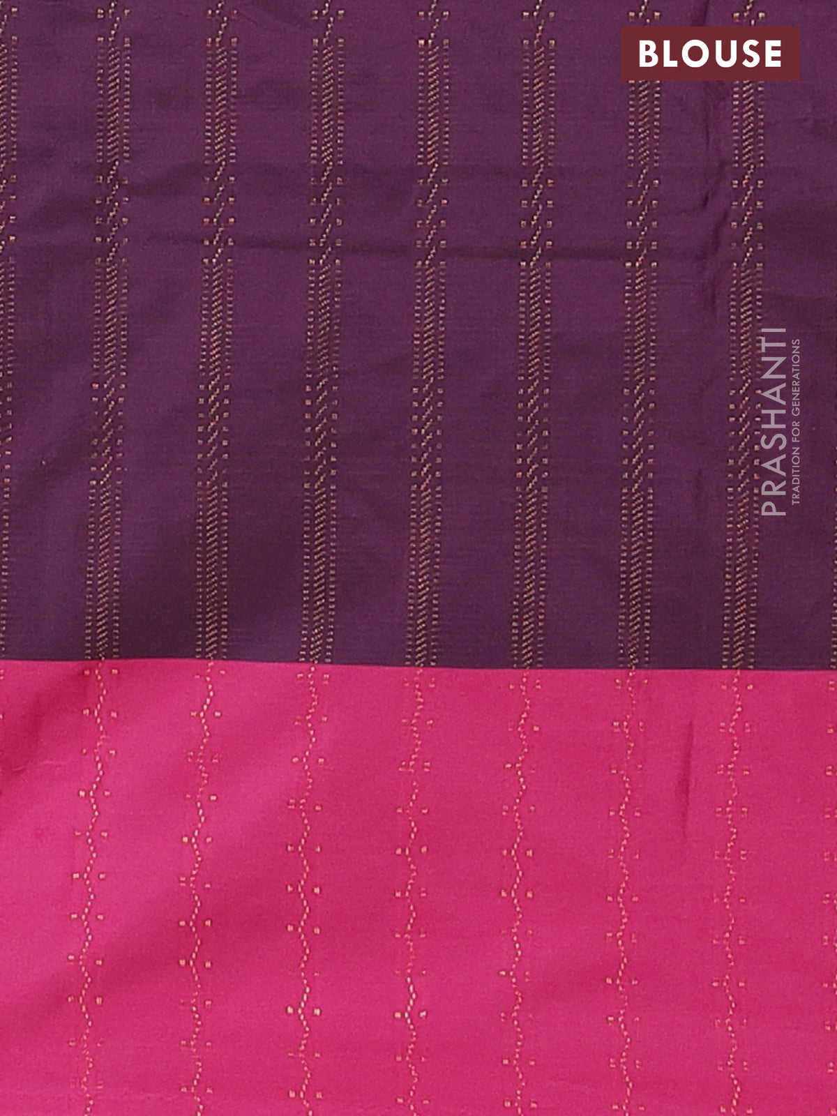 Arani semi silk saree peacock green and pink with allover zari weaves and zari woven border