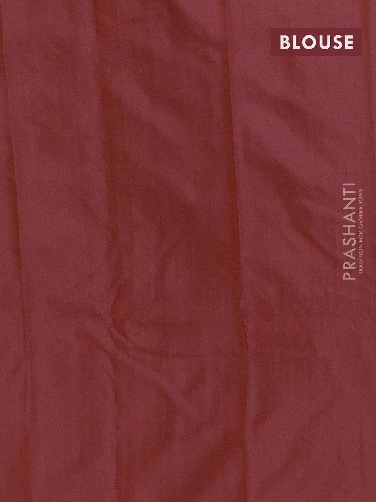 Arani semi silk saree rustic brown with allover silver zari weaves in borderless style
