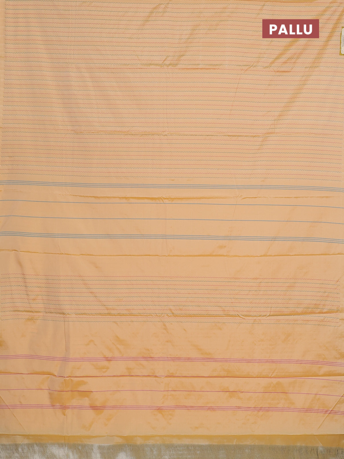 Arani semi silk saree yellow with allover thread weaves in borderless style