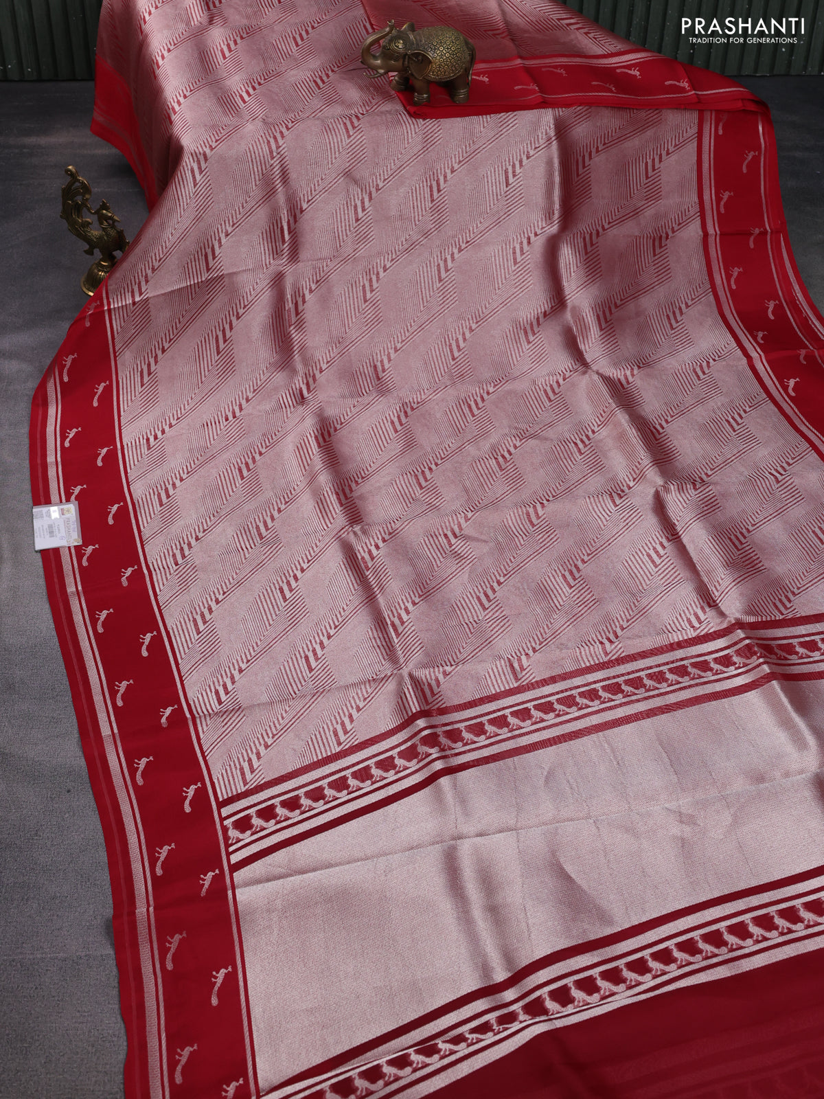 Banarasi katan silk saree red with allover silver zari woven brocade weaves and zari woven butta border