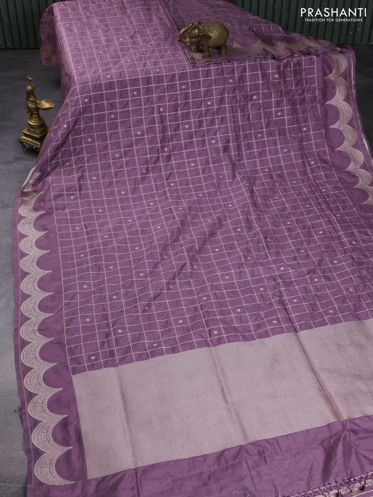 Banarasi semi katan saree pastel lavender with allover zari checks and zari woven border