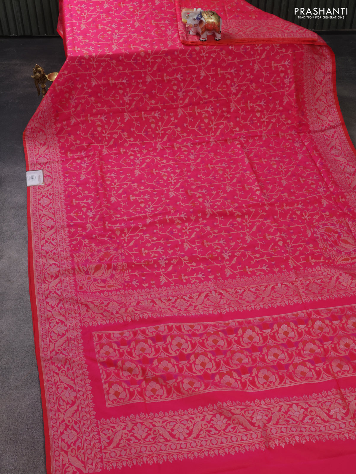 Banarasi semi katan silk saree pink with allover jamdhani weaves and rich zari woven border