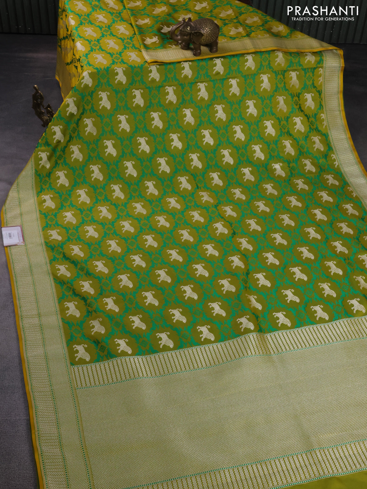 Banarasi semi mushru silk saree dual shade of lime yellow with allover thread weaves & buttas and zari woven border
