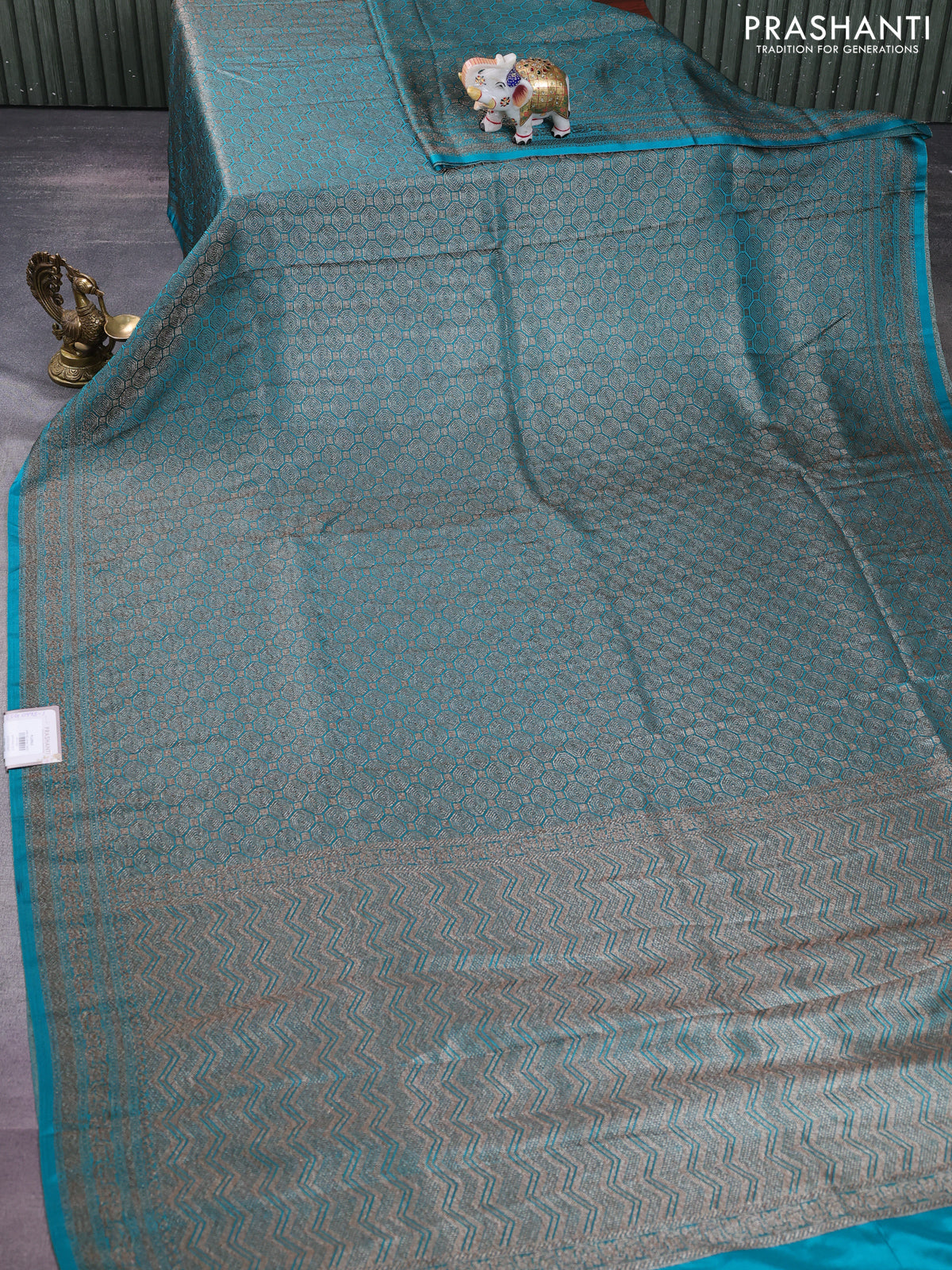 Banarasi semi silk saree teal blue with allover thread & zari weaves and woven border