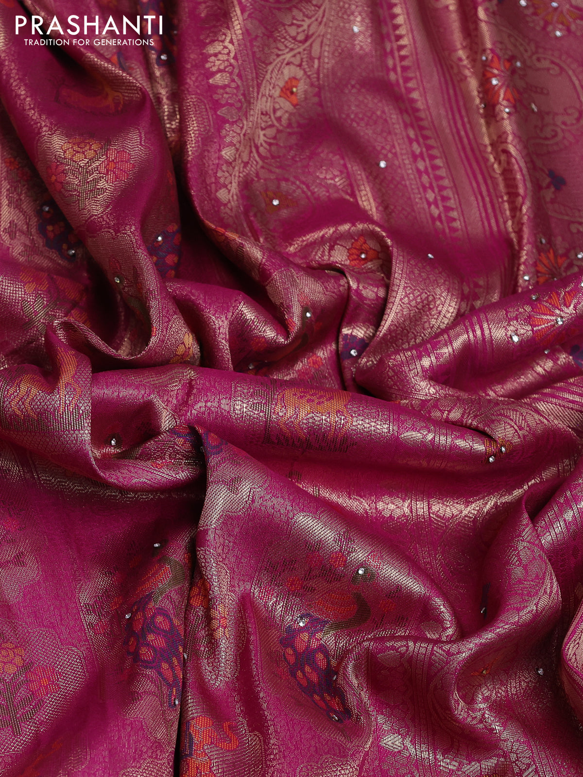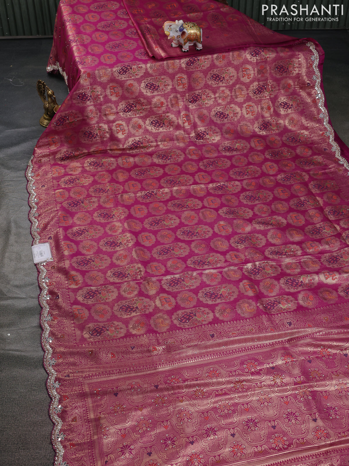 Banarasi silk saree purple with allover zari woven brocade weaves and zaridosi gotapatti work border