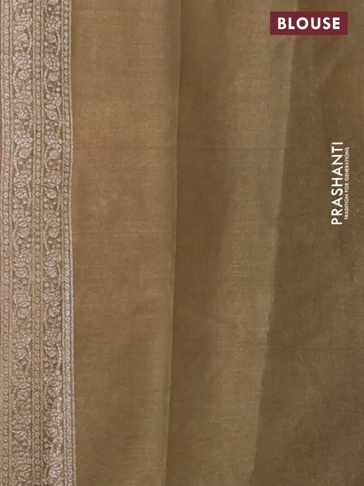 Banarasi tissue silk cotton saree pastel peach shade and elaichi green with allover thread & zari woven butta weaves and woven border