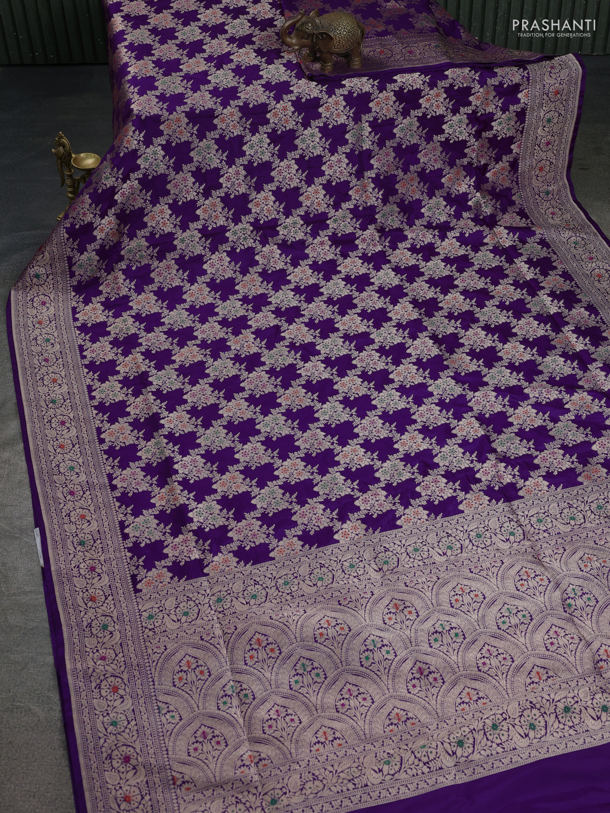 Banarasi uppada silk saree violet with allover zari woven mina weaves and zari woven border