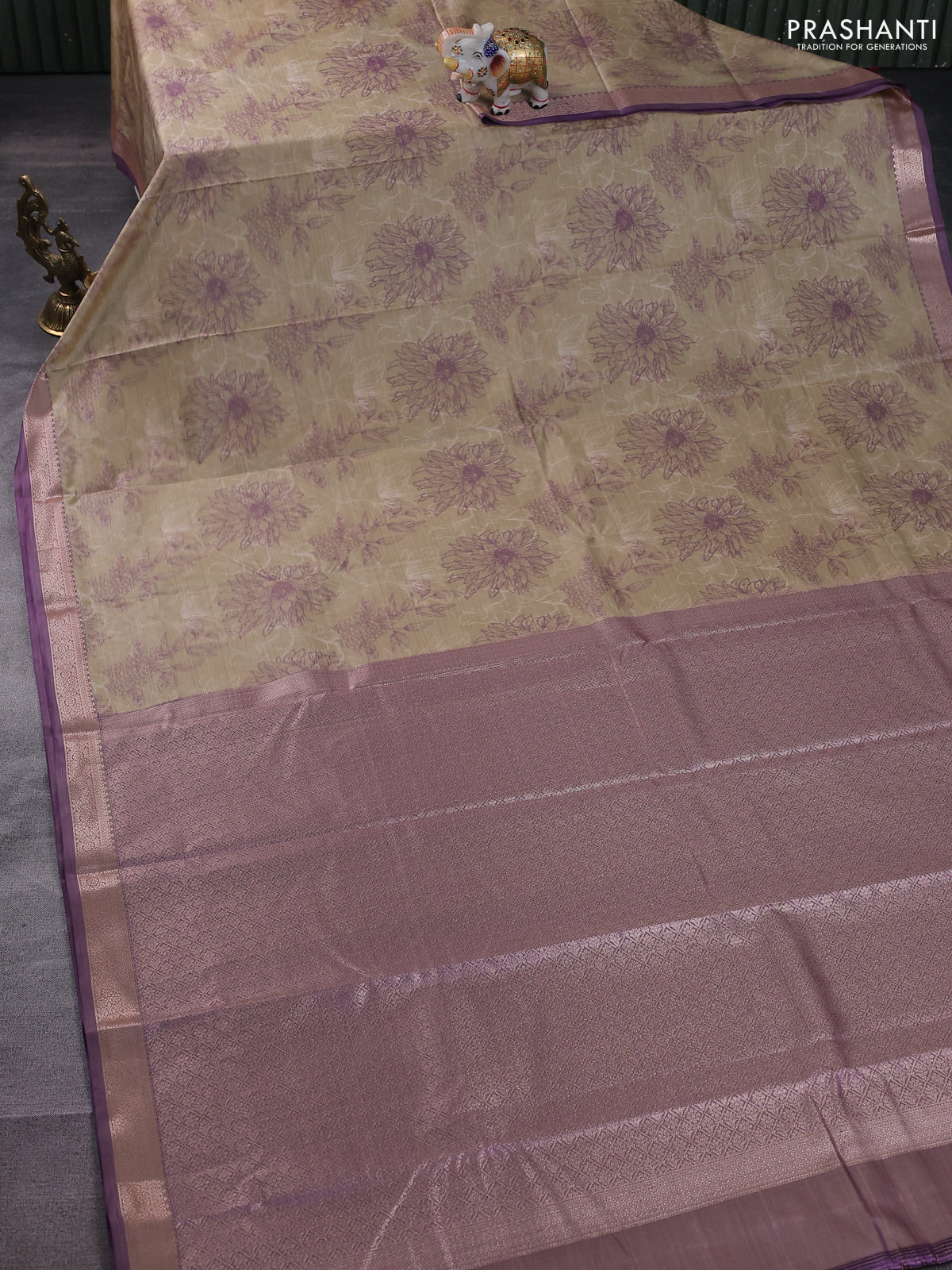 Bangalori semi silk saree elaichi green and violet with allover ikat weaves and zari woven border