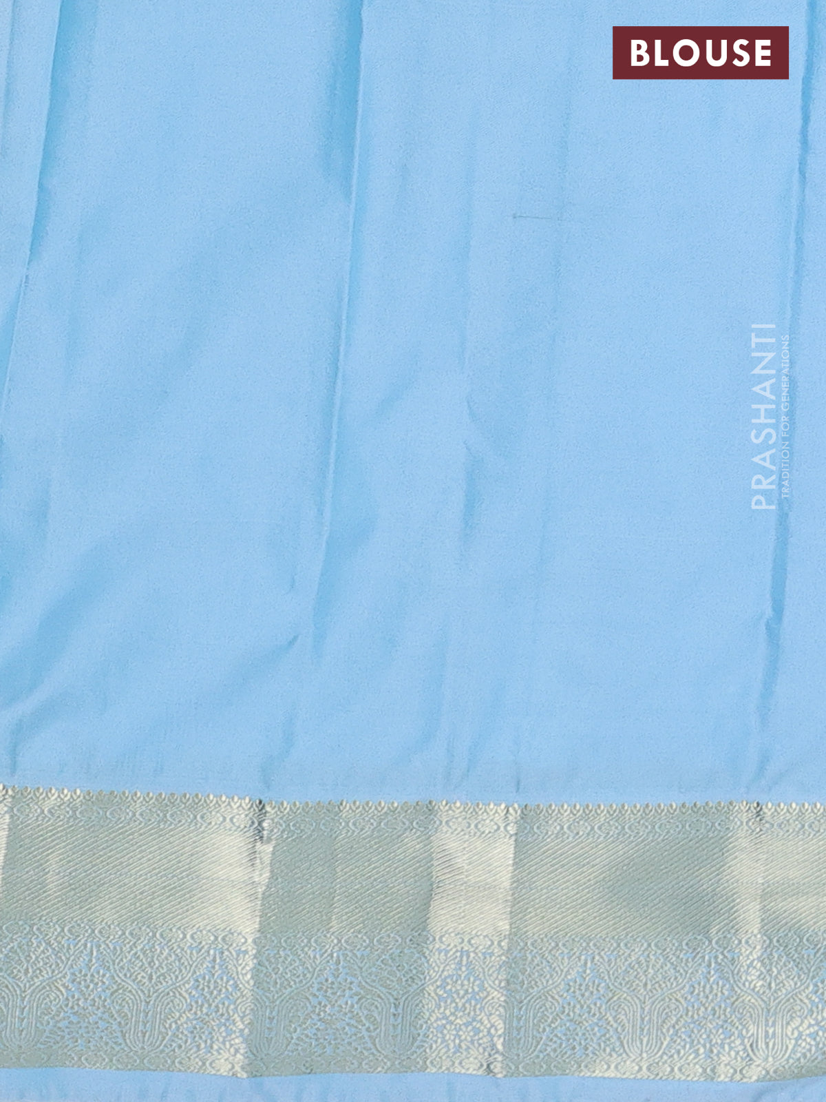 Bangalori silk saree dark magenta pink and pastel blue with allover zari weaves & buttas and zari woven border