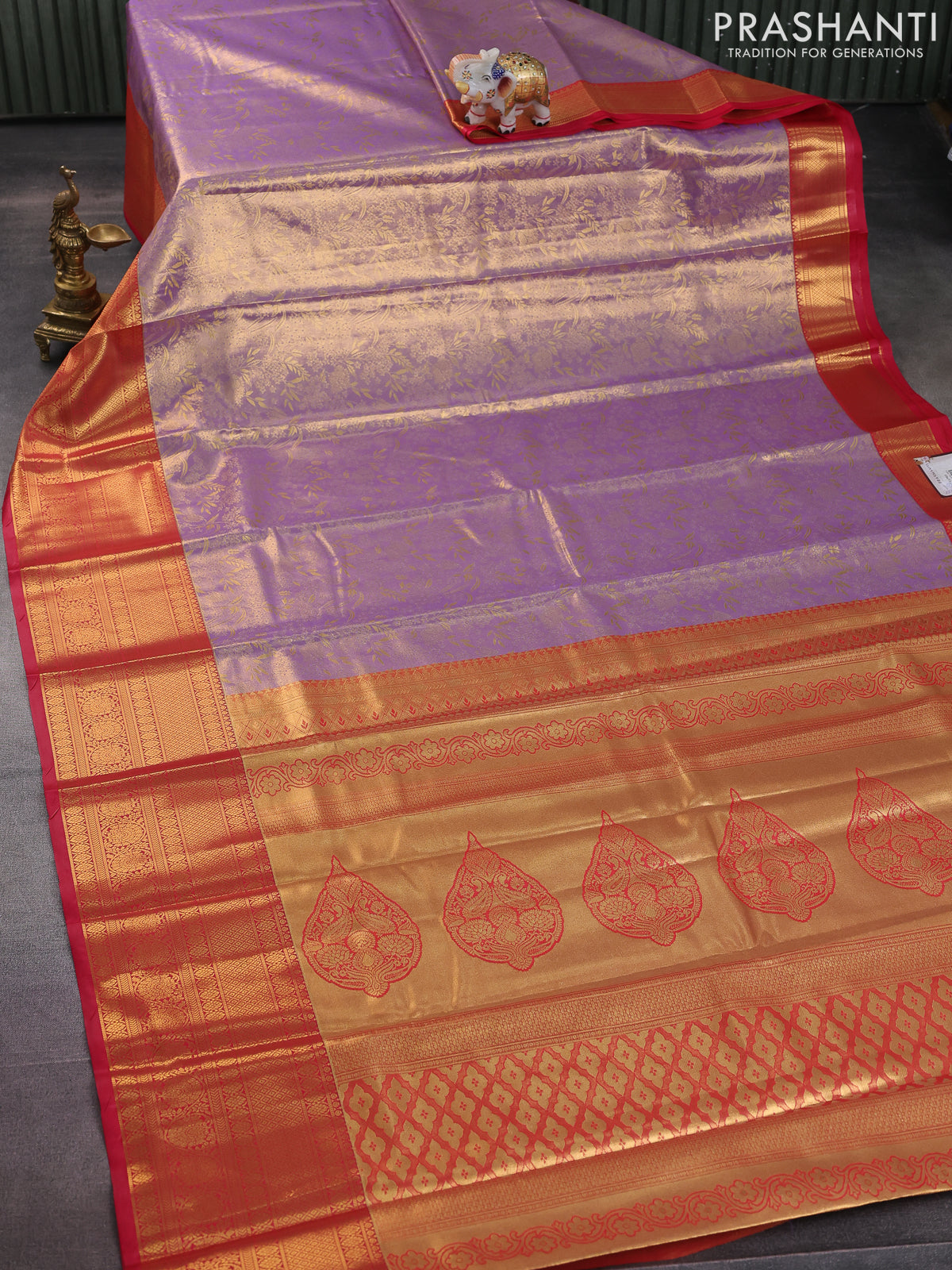 Bangalori tissue silk saree lavender shade and pink with allover zari woven brocade weaves and long zari woven border