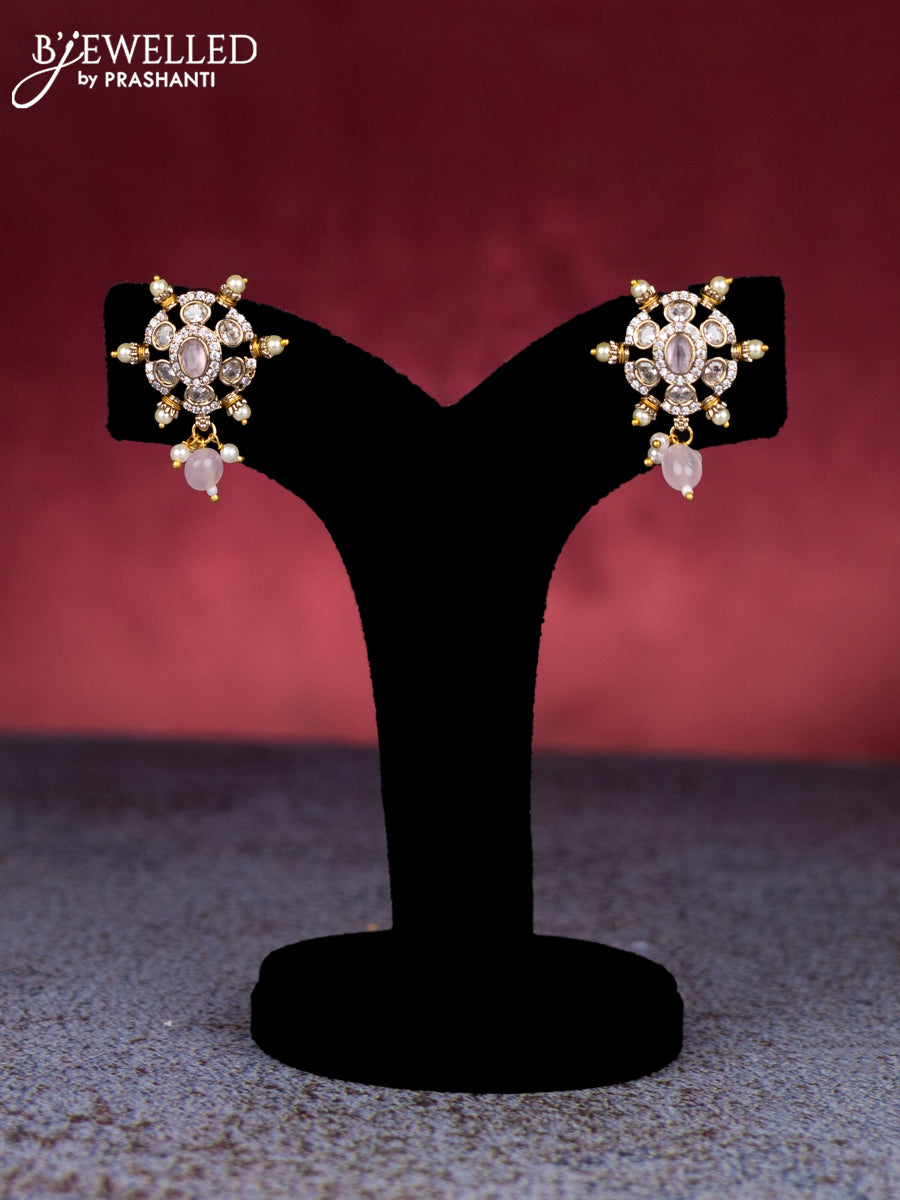 Beaded baby pink necklace with cz stones and pearl & beads hangings in victorian finish
