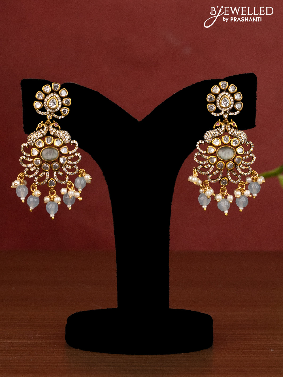 Beaded ice blue triple layer necklace peacock design with cz stones and beads hanging