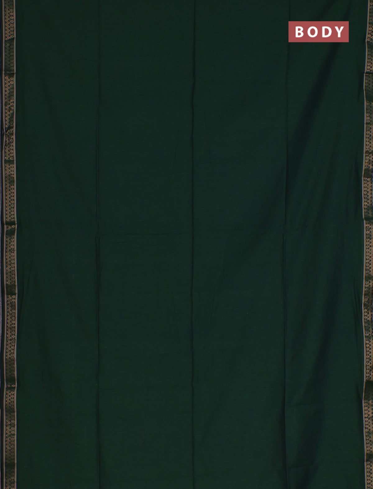 Bengal soft cotton saree bottle green and blue with plain body and zari woven border