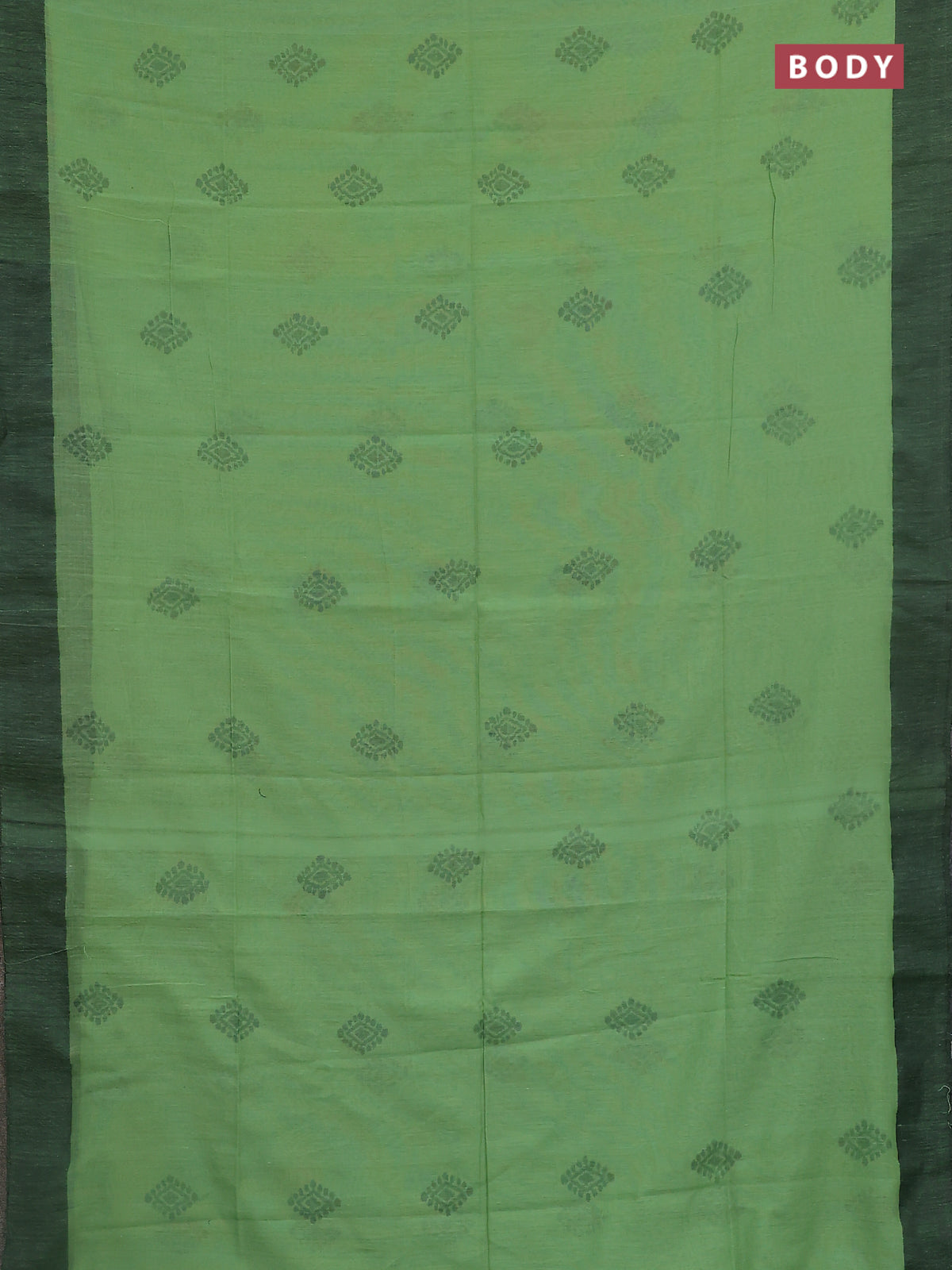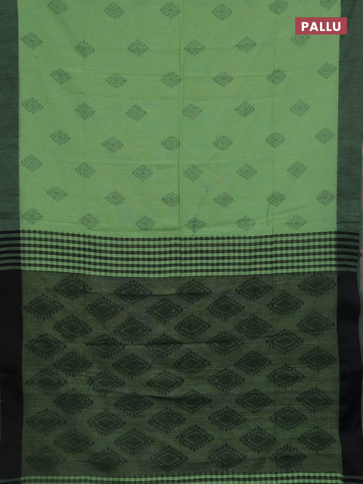Bengal soft cotton saree pastel green and black with butta weaves and simple border