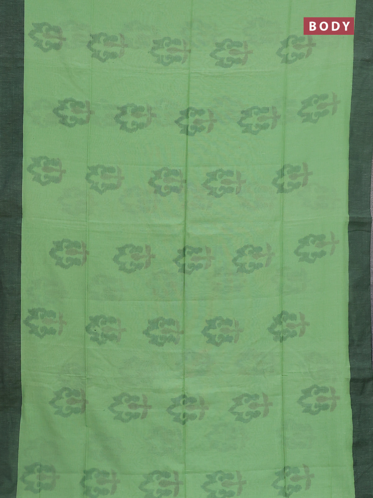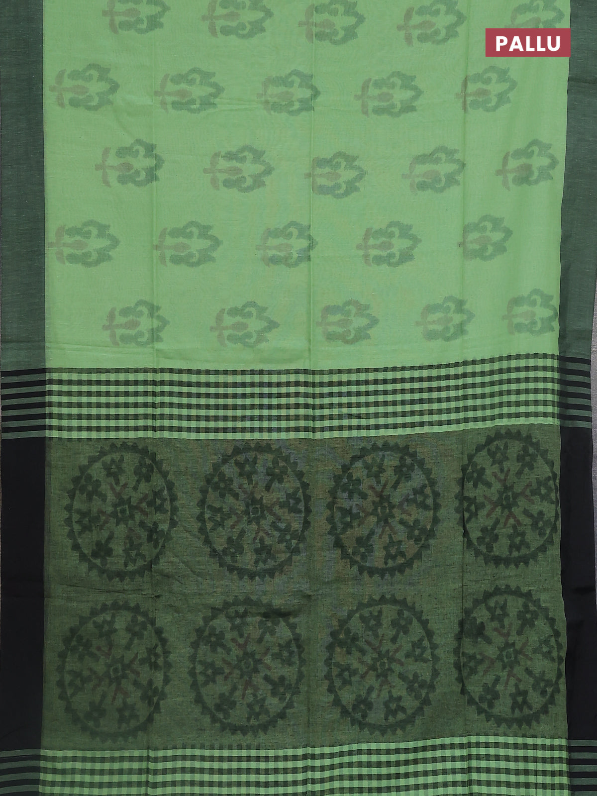 Bengal soft cotton saree pista green and black with allover weaves and simple border