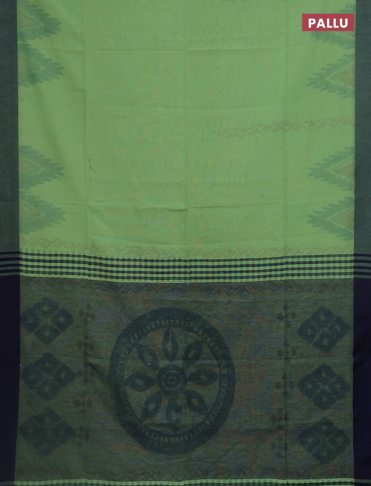 Bengal soft cotton saree pista green and navy blue with allover butta weaves and simple border