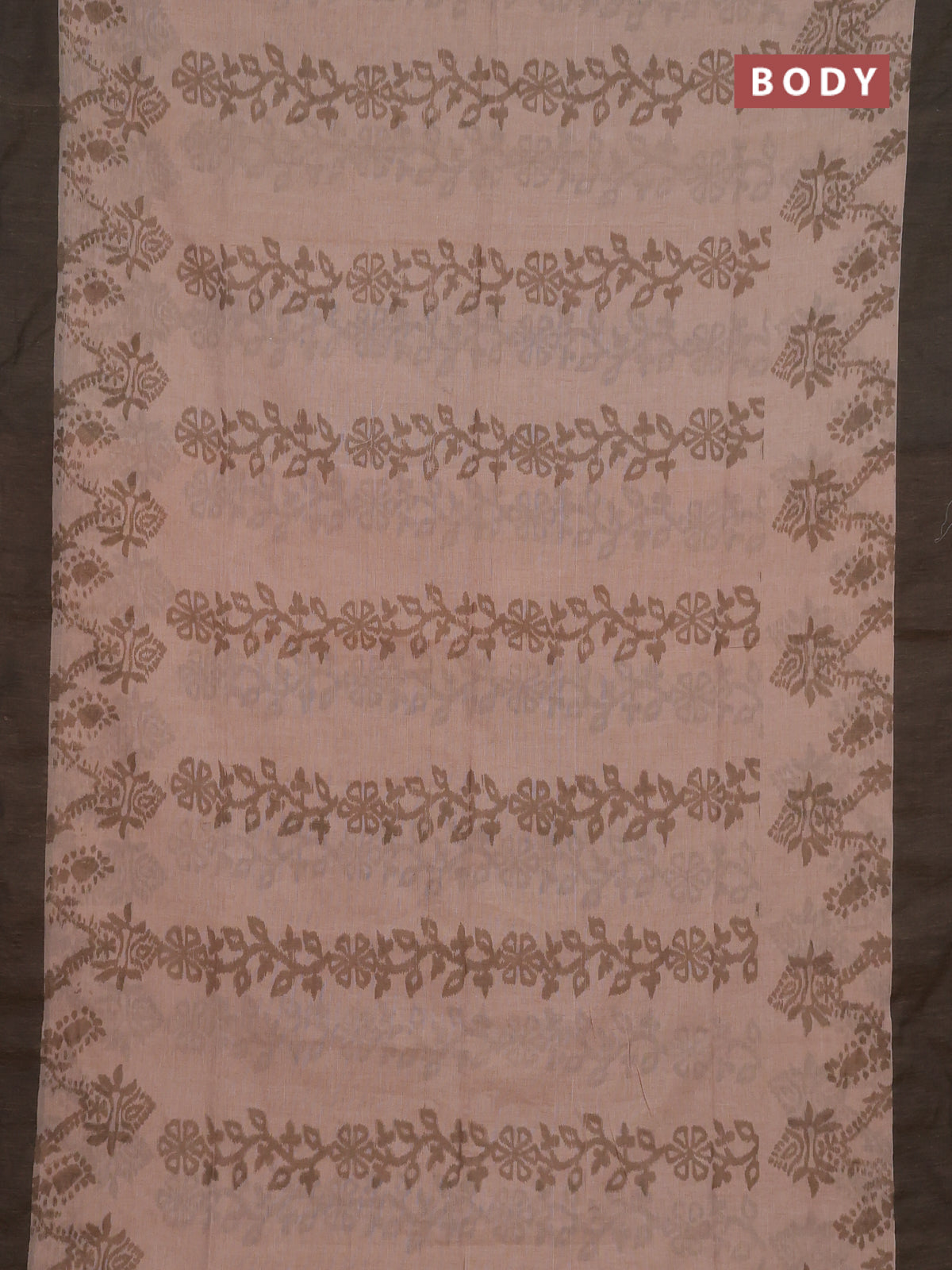 Bengal soft cotton saree sandal and black with allover weaves and simple border