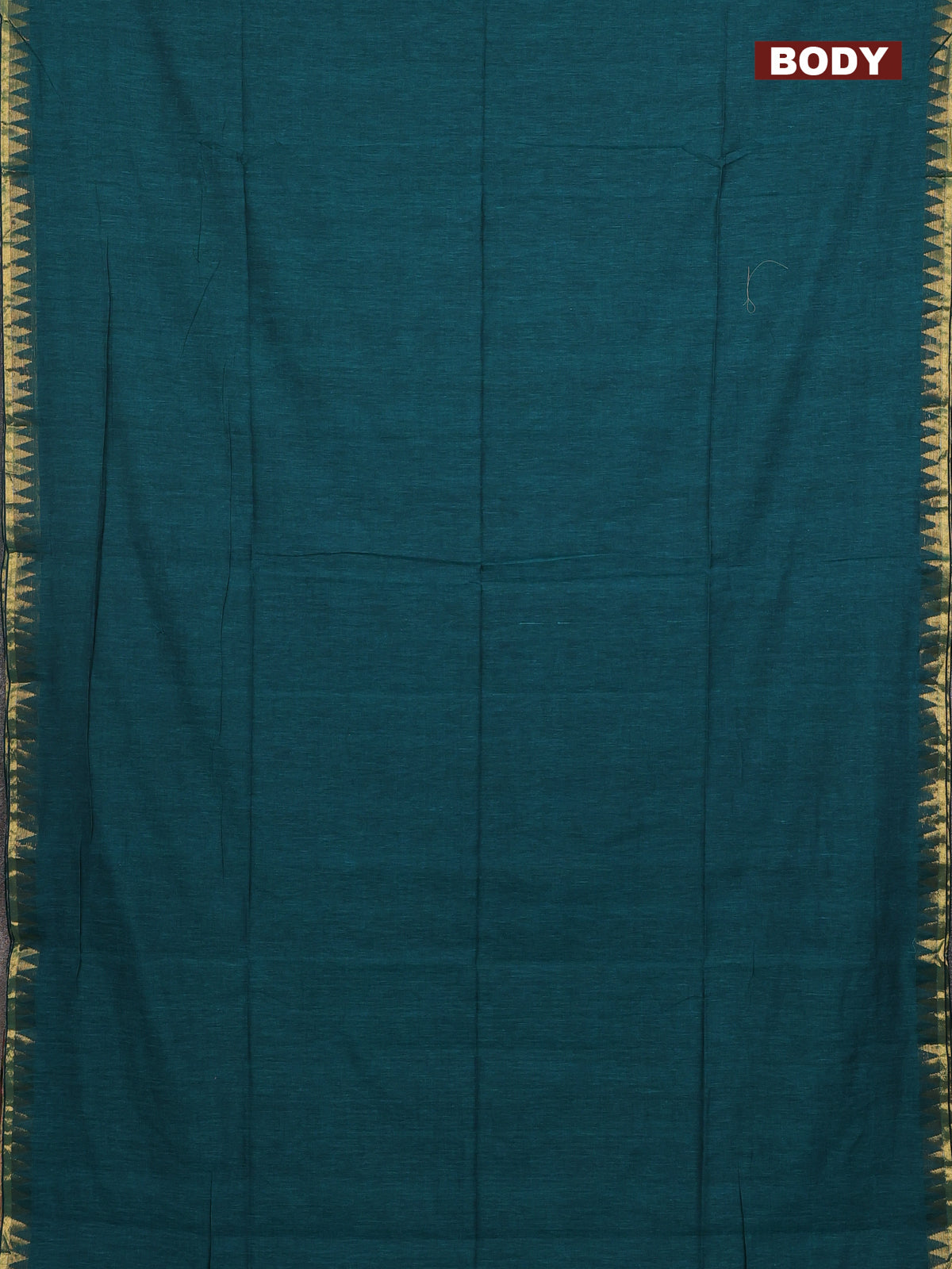 Bengal soft cotton saree teal green and red with plain body and zari woven border