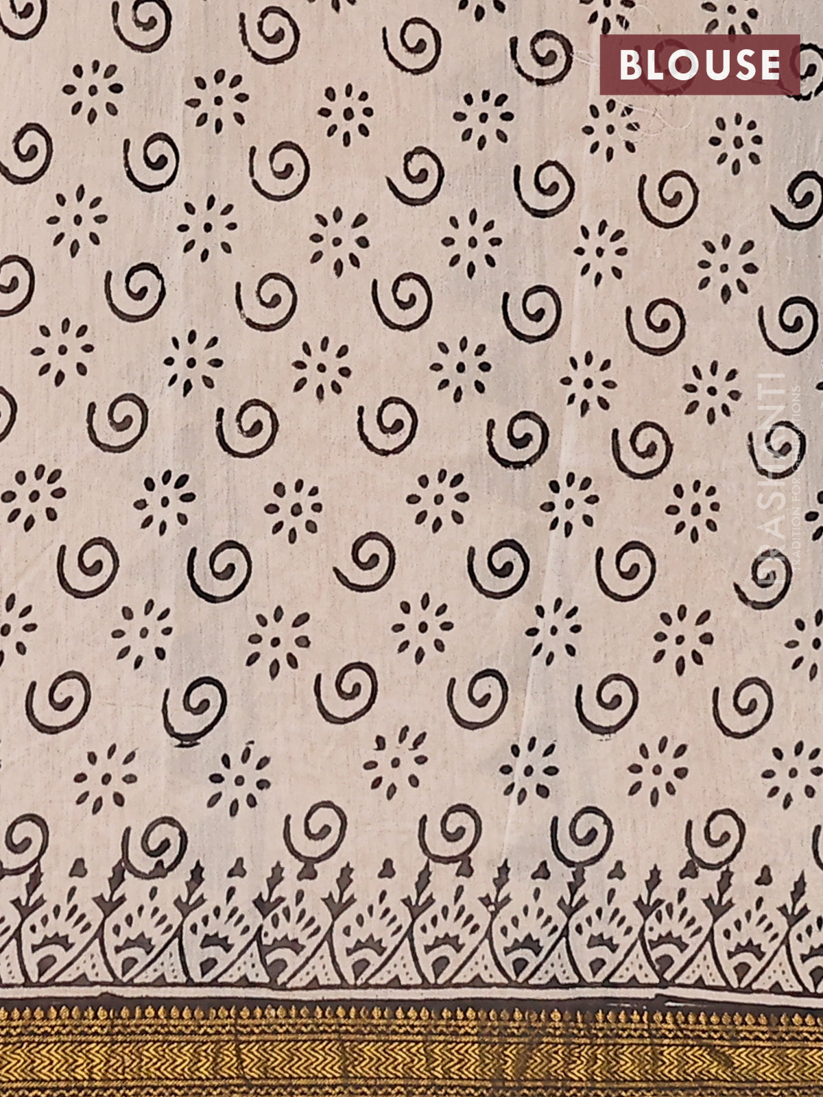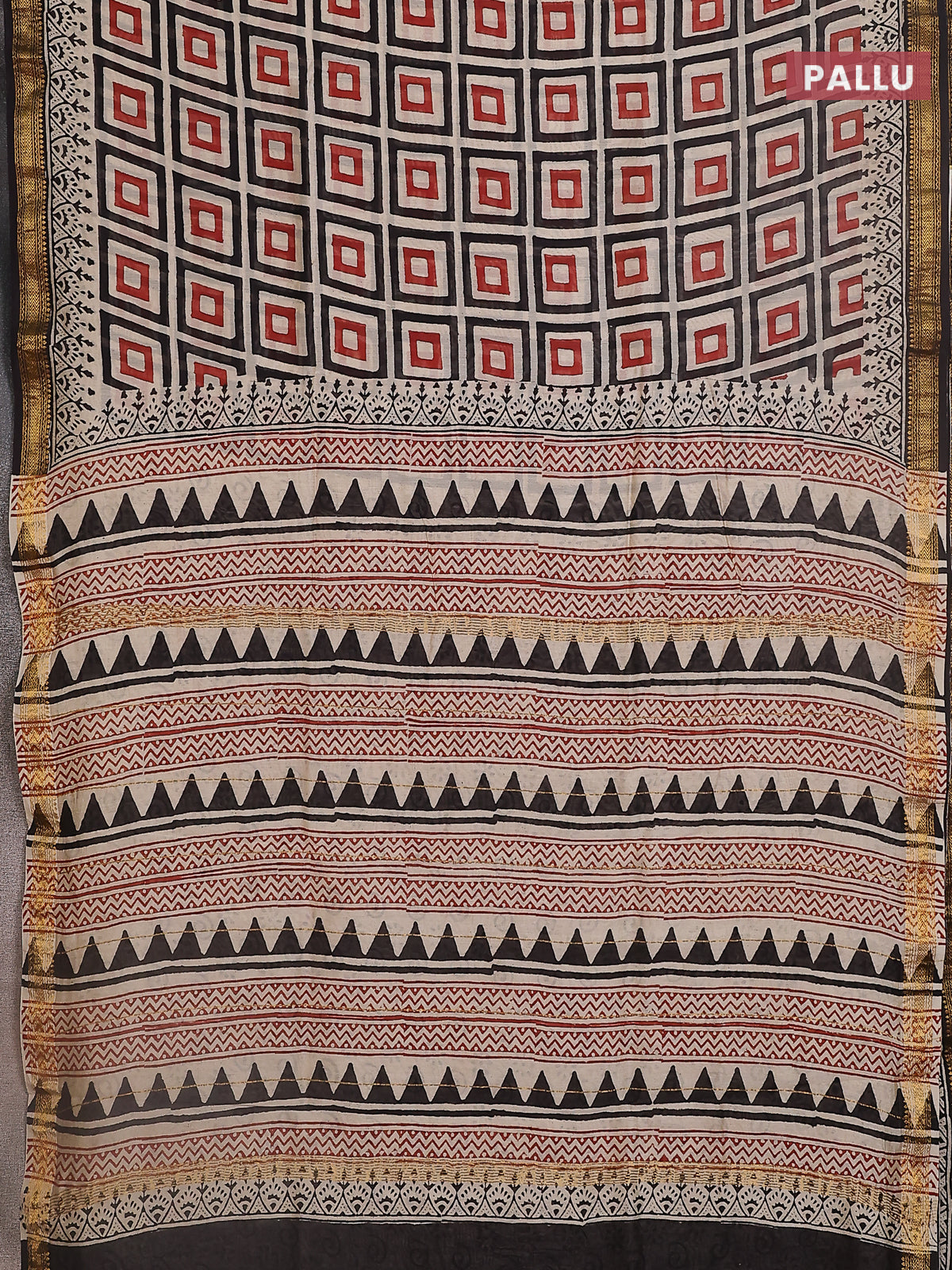 Chanderi bagru saree beige and black with allover geometric prints and maheshwari border