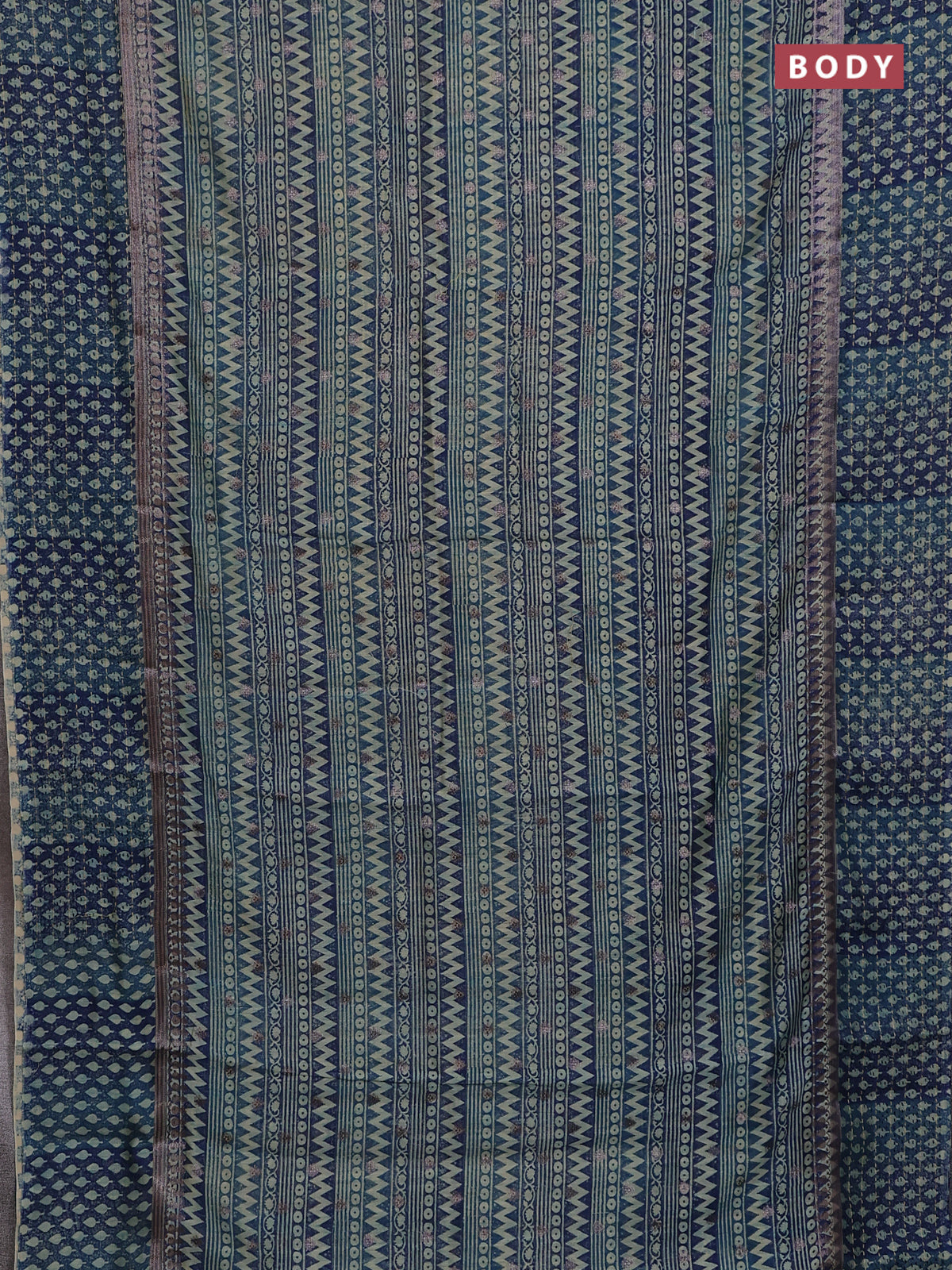 Chanderi silk cotton saree blue with allover prints & woven buttas and kanth stitch work border