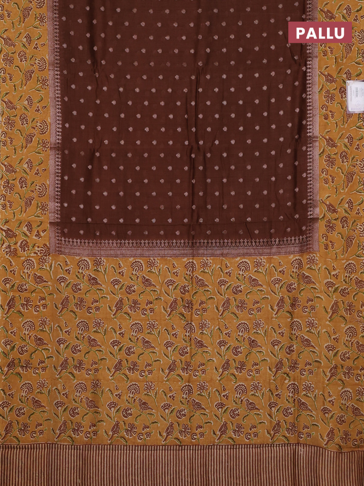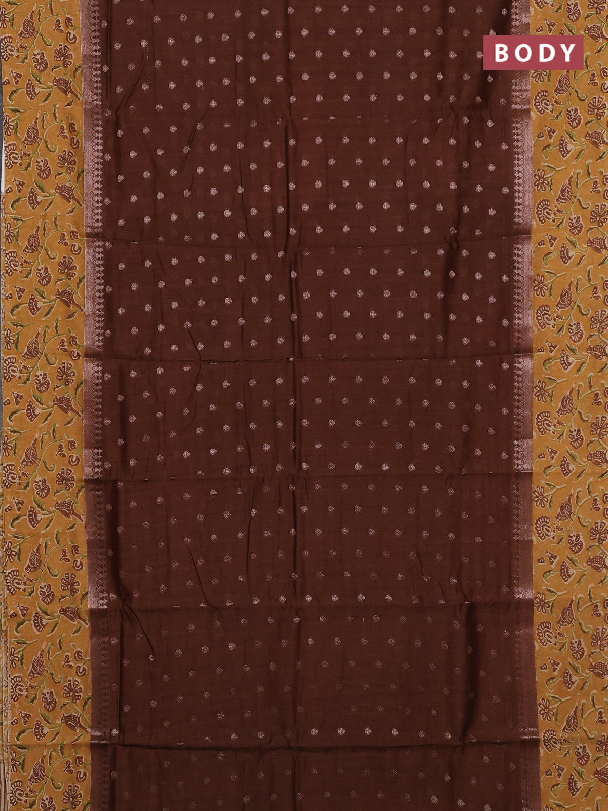 Chanderi silk cotton saree brown and sandal with allover zari buttas and printed border