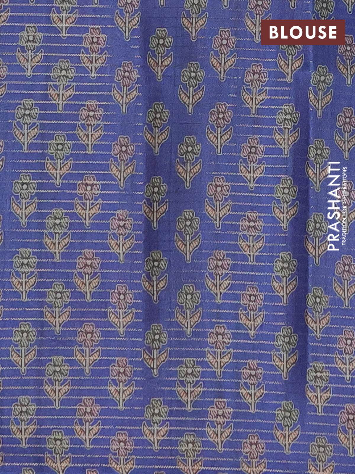 Chappa saree blue and beige with allover small zari checked pattern and madhubani printed pallu
