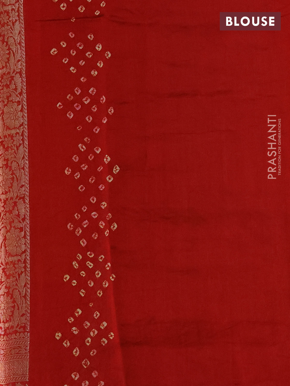 Chiniya silk saree mustard yellow and maroon with allover zari buttas & bandhini prints and zari woven border