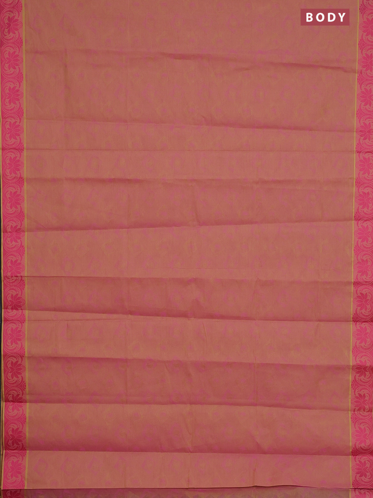 Coimbatore cotton saree dual shade of pinkish yellow and pink with allover self emboss and thread woven border