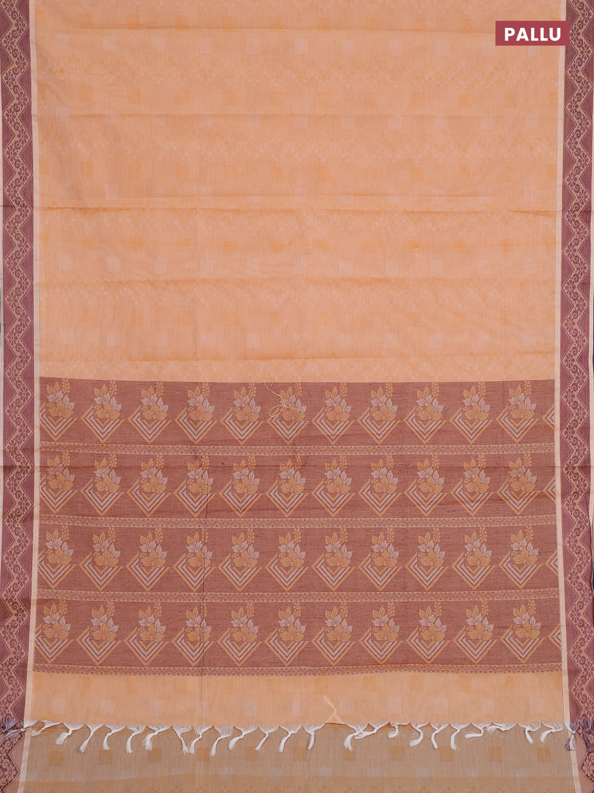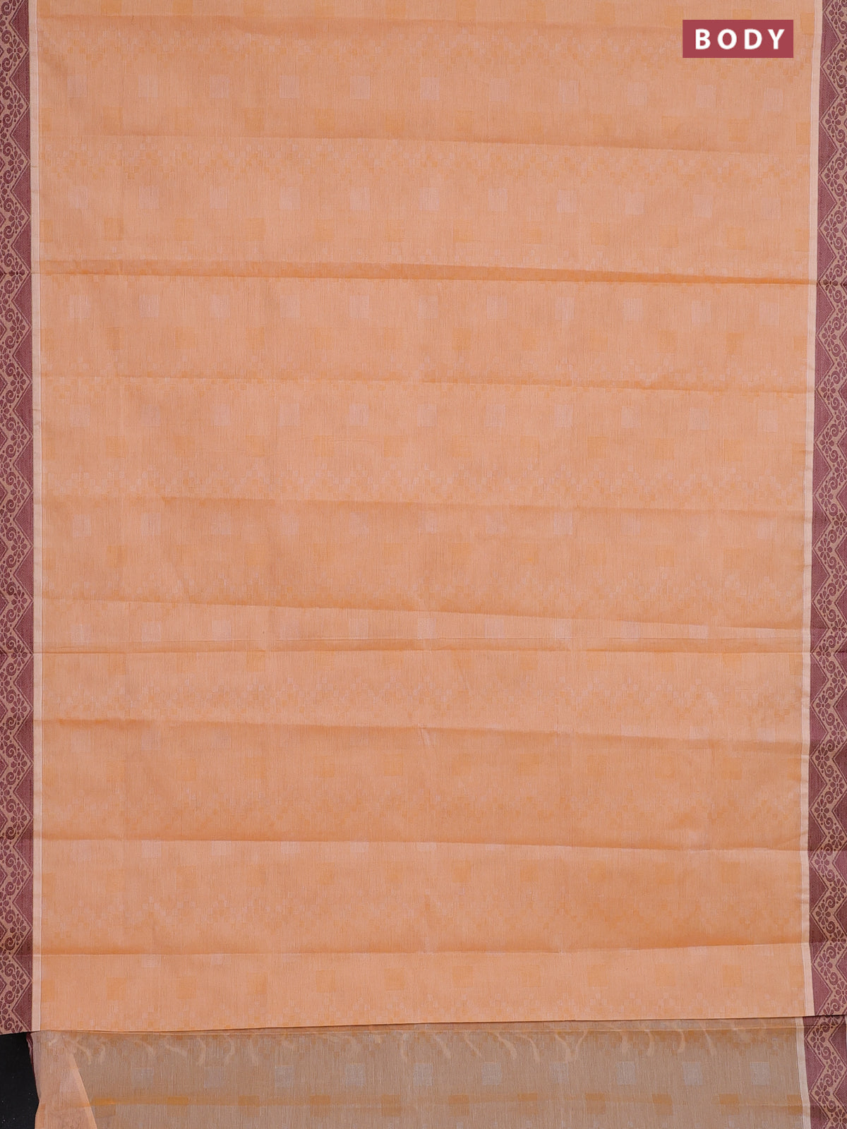 Coimbatore cotton saree pale orange and coffee brown with allover self emboss and thread woven border