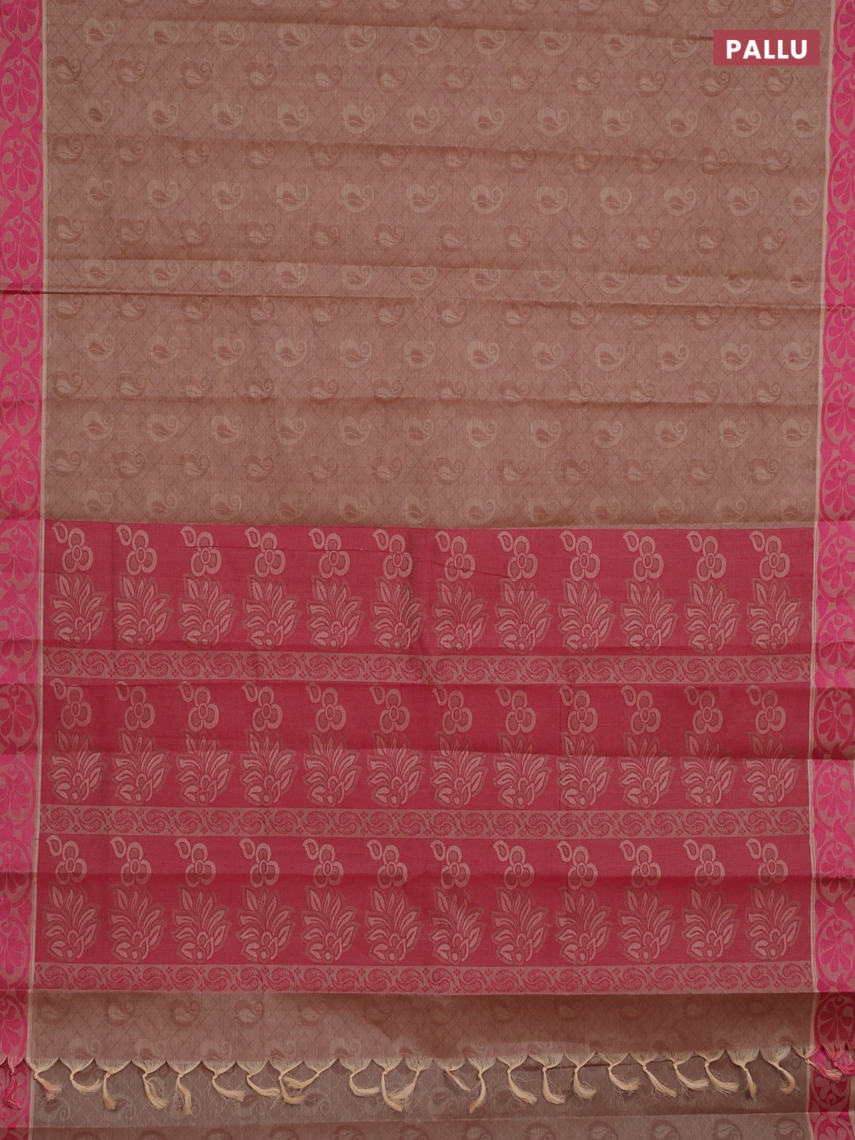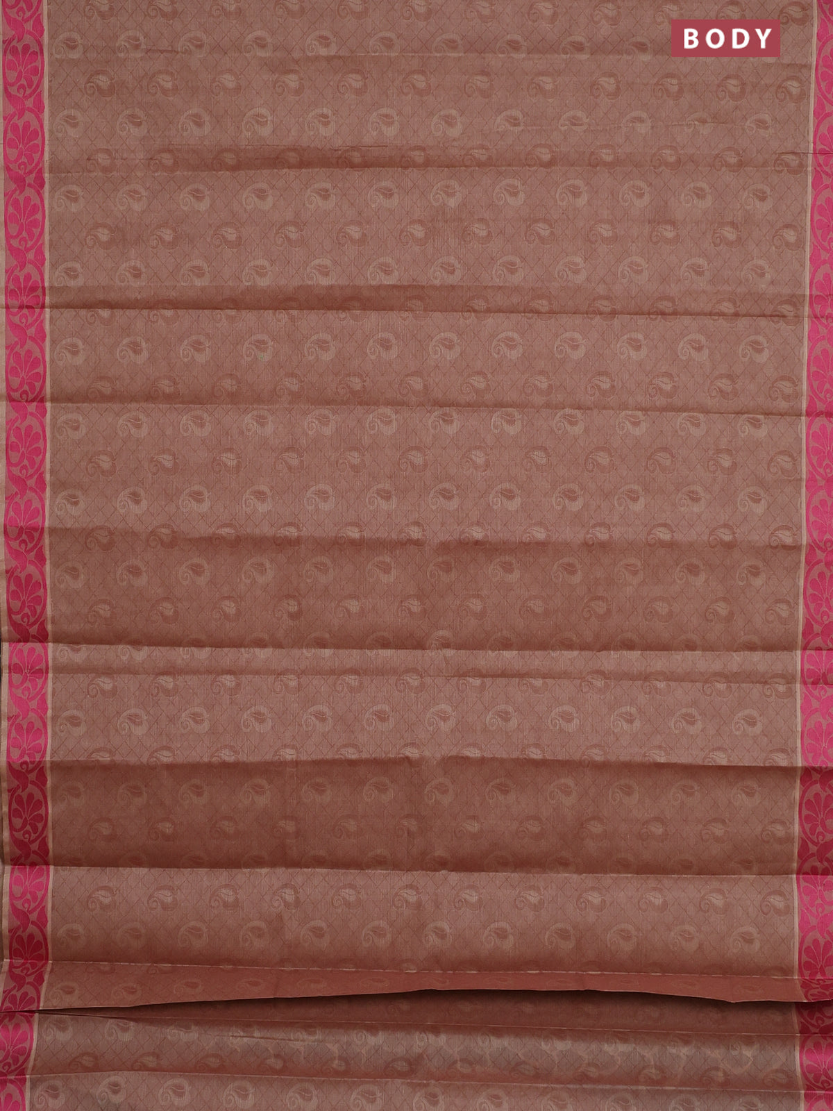 Coimbatore cotton saree pastel brown and pink with allover self emboss and thread woven border