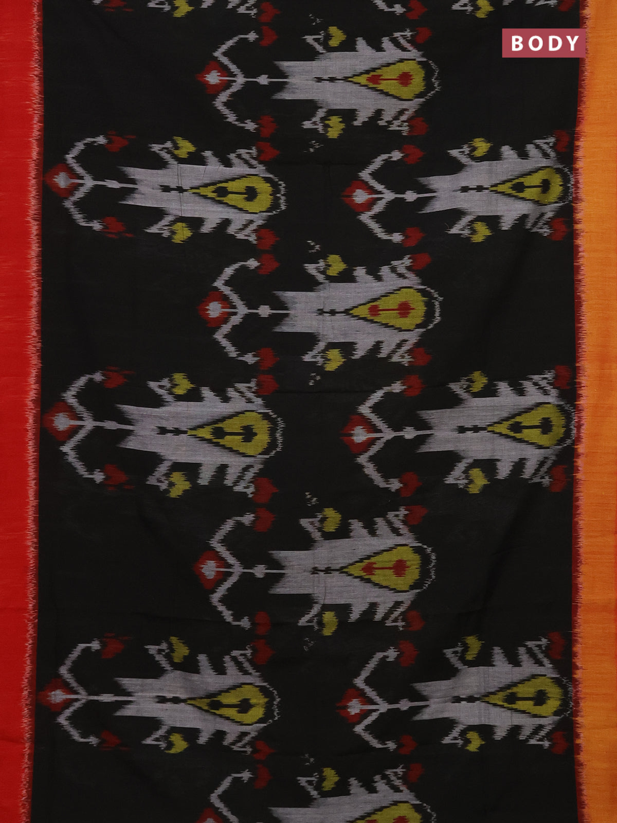 Ikat cotton saree black with allover ikat weaves and ganga jamuna border