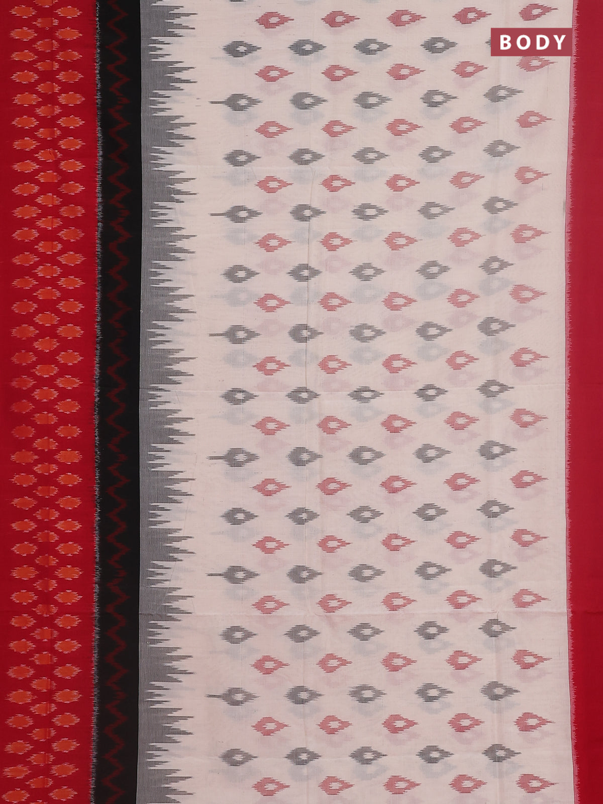 Ikat cotton saree cream and red with allover ikat butta weaves and long ikat style border